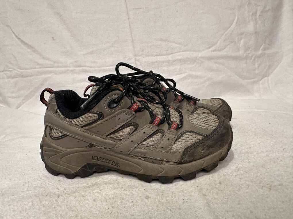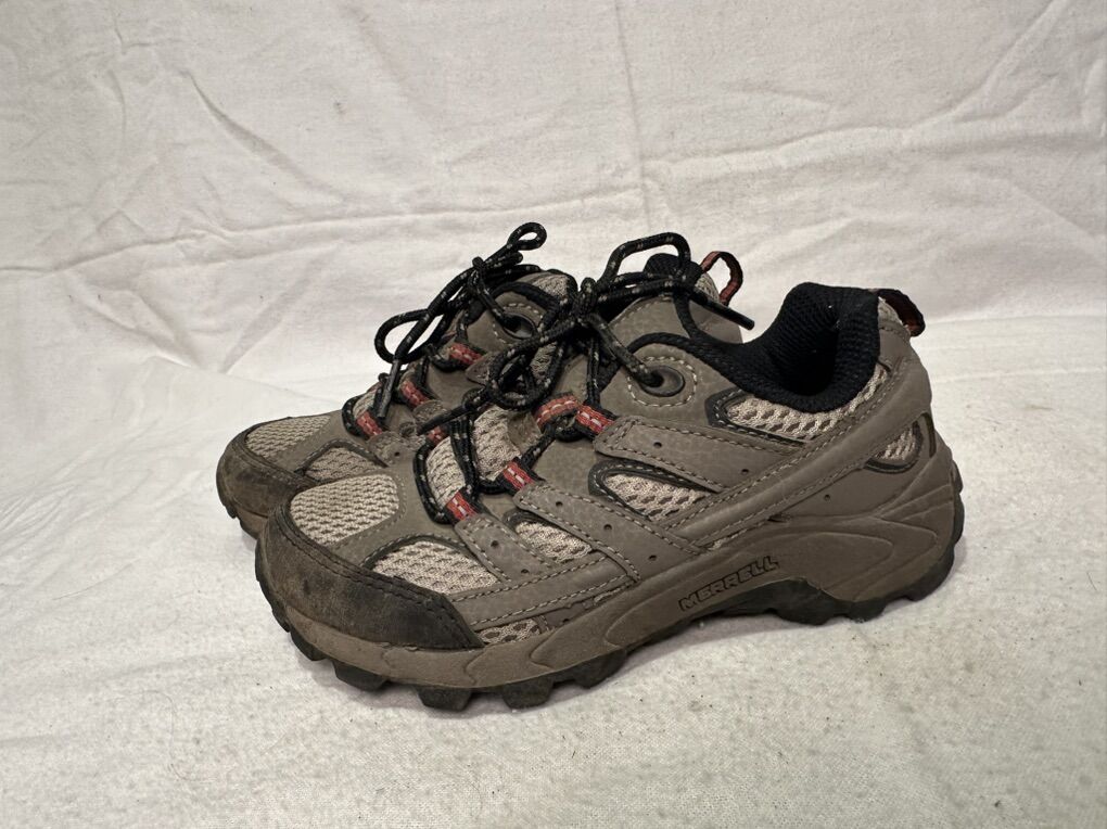Merrell toddler size 11 M-Moab, beige, leather and mesh with red trim, hiking shoes. These lace up the front and are in good condition. See photos for details. I take cash or Venmo, but cash is preferred. Text is best. 801-201-4446. Check out my other ads for additional sizes and styles.
