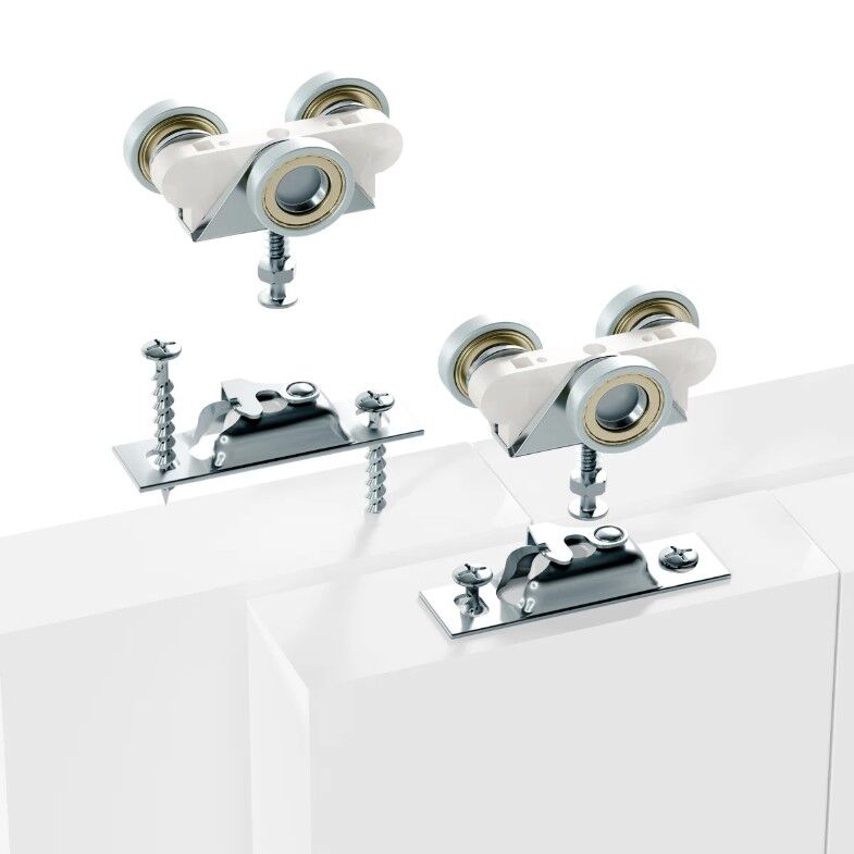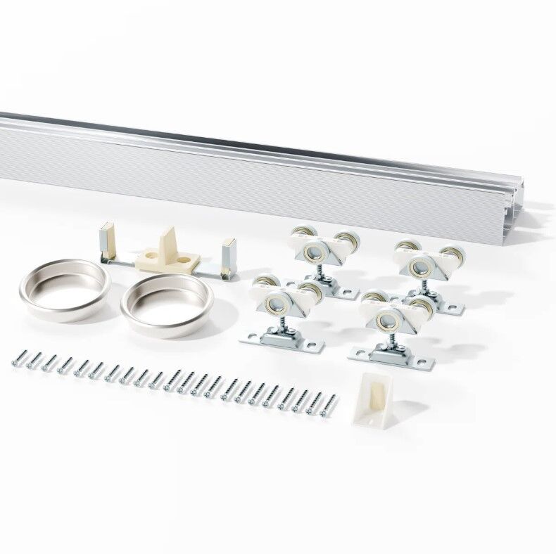 ApplePayBypass Door Hardware Aluminum Sliding Closet Door Hardware Set With Finger Pull Included, Smoothly And Quietly, For 2 Door System, Fit Door Thickness 1 3/8" Or 1 3/4", Easy To Install