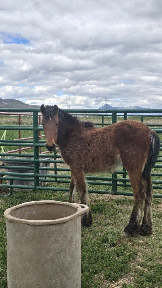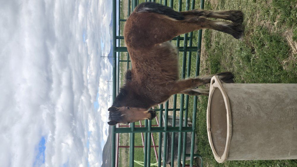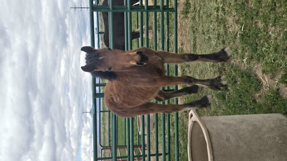 VenmoWeaned and ready to go! This little filly is going to make a fancy horse! She is going to be 15+hh she is a dark bay with all black socks. Her dad is a national champion in dressage. Her mom is a daughter to a top competing Olympic stud. She has amazing potential in dressage or a to be a great pleasure/trail horse.