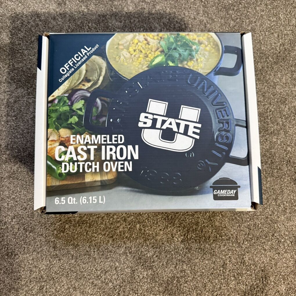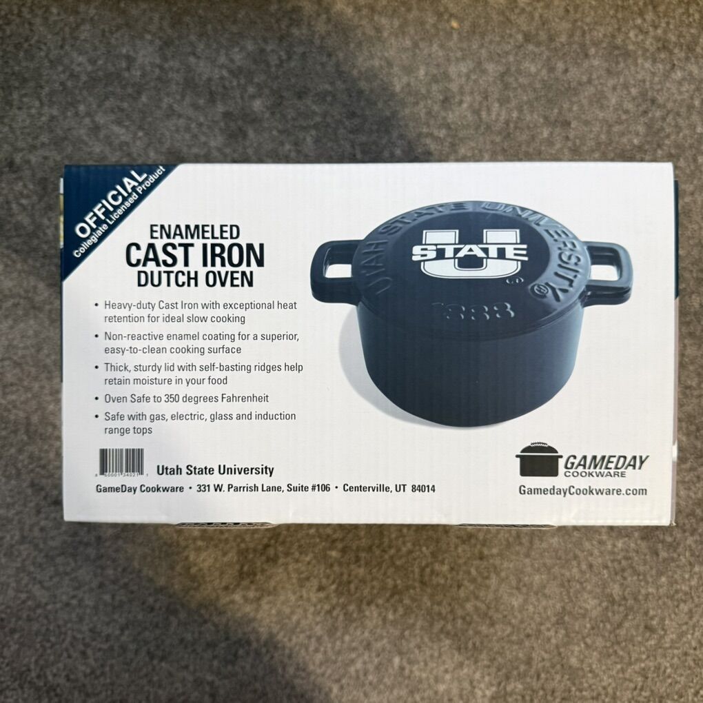 VenmoUtah State branded dutch oven. Brand new in the box. Only took it out of the box to take pictures. Have plenty of them available. Will give better pricing if you buy multiple. Let me know if you have any questions.