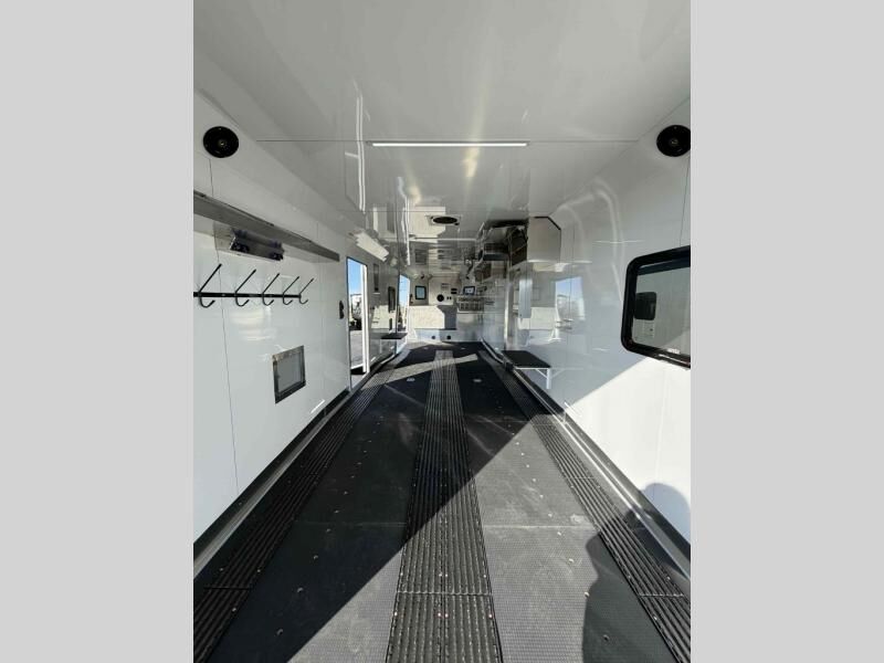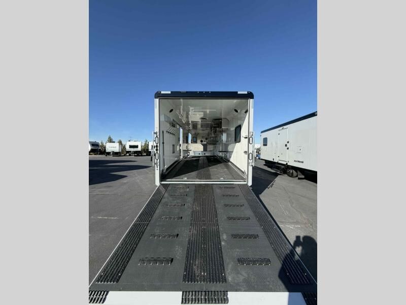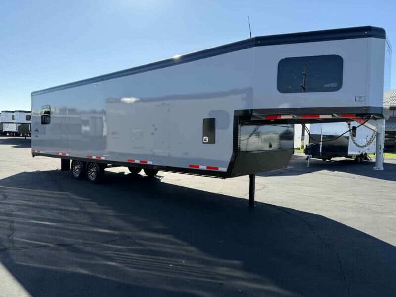 Gooseneck cargo trailer designed for OHVs such as snowmobiles and ATVs.