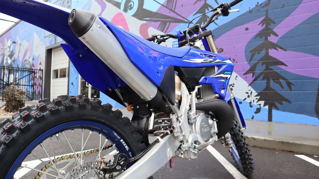 Renowned for its championship-level performance, the YZ250’s Speed Sensitive System 48mm KYB® fork features a mid-speed valve leaf spring for precise damping and greater control. The fully adjustable KYB® rear shock, with Kashima Coat internals and dual compression adjusters, delivers exceptional comfort, balance, and traction across even the roughest terrain.