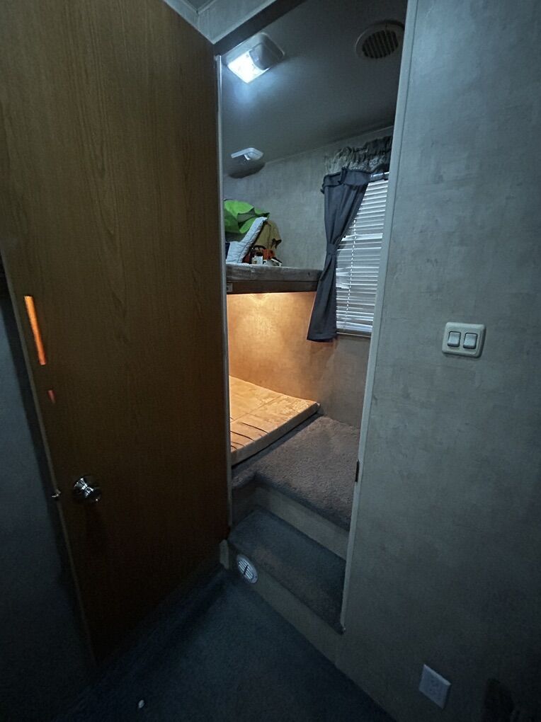 Double bunks in the back Tons of storage more places to put things and forget about it Upgraded LED lighting All the appliances work besides the microwave (it’s about $100 for a new one) All plumbing fixtures have been upgraded. Brand new brakes/ hubs done this year Tires are in excellent shape/ spare is perfect Roof/ windows/ doors resealed Sleeps 8 Huge slide out and awning Quick connect hookup for cooker Set up for double pulling/ TJ trailers set it up- wiring set up for trailer brakes on rear trailer. Nothing wrong with this trailer and we have loved it and have maintained it very well. We upgraded to a toy hauler. It is winterized and the cover is on. Clean title- in hand . $9250 OBO. No low balls. No scams No emails No codes No I will not pull a report on a specific website.