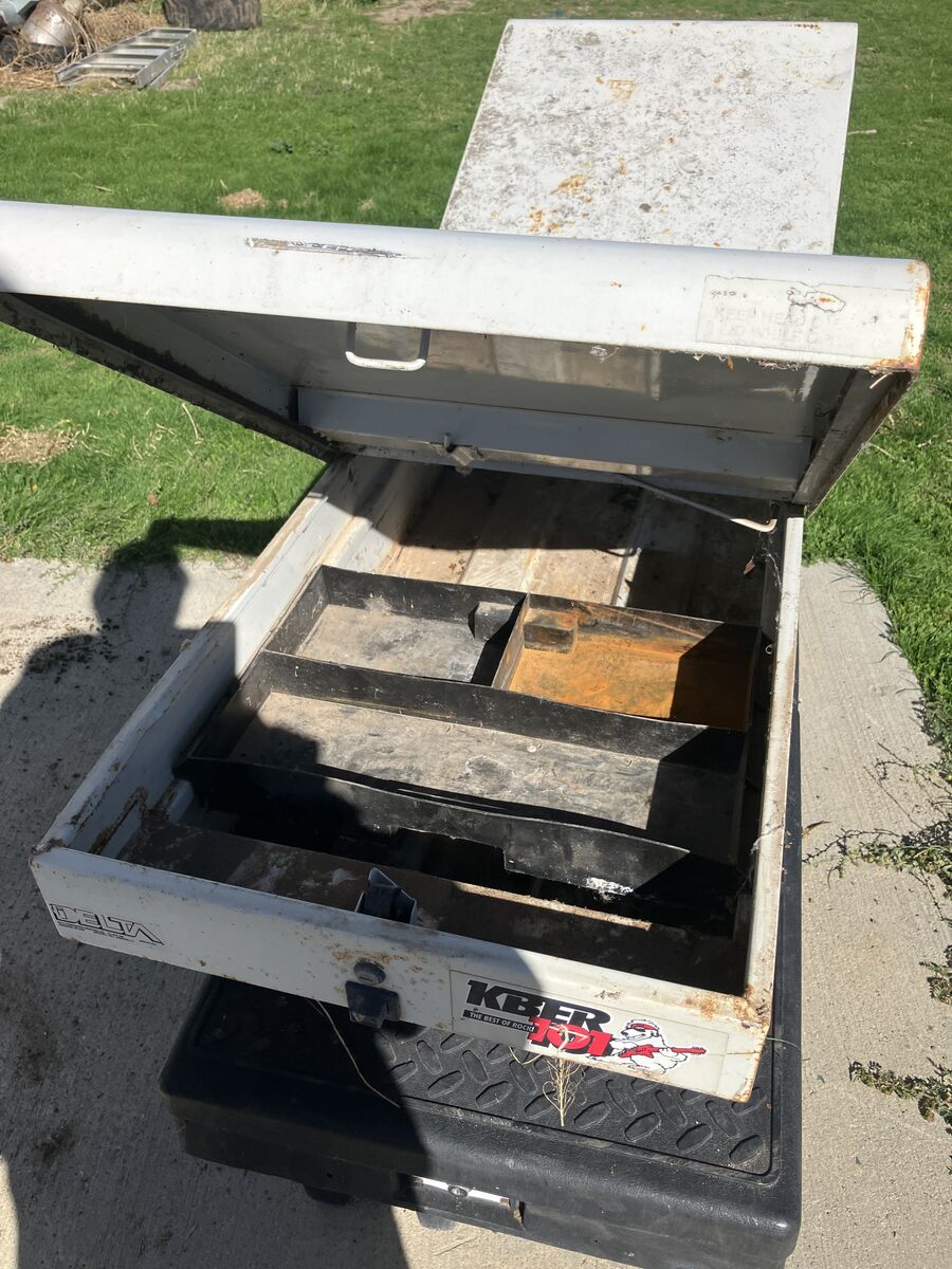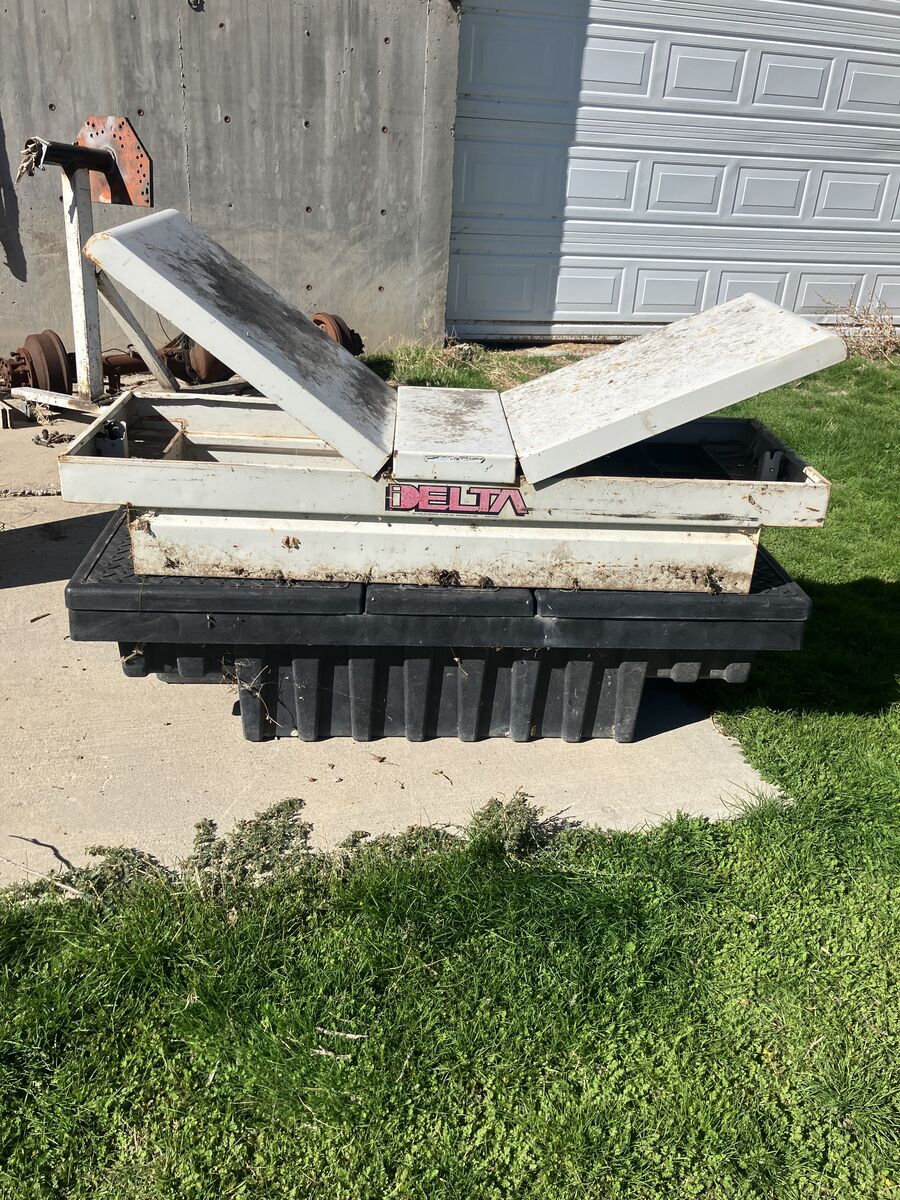 FOR SALE 2 pick up tool box(s) one TUFF BOX brand plastic style and one DELTA steel tool box, good condition, good for pickup truck or trailer(?) $75 each or best offer, no keys for box locks