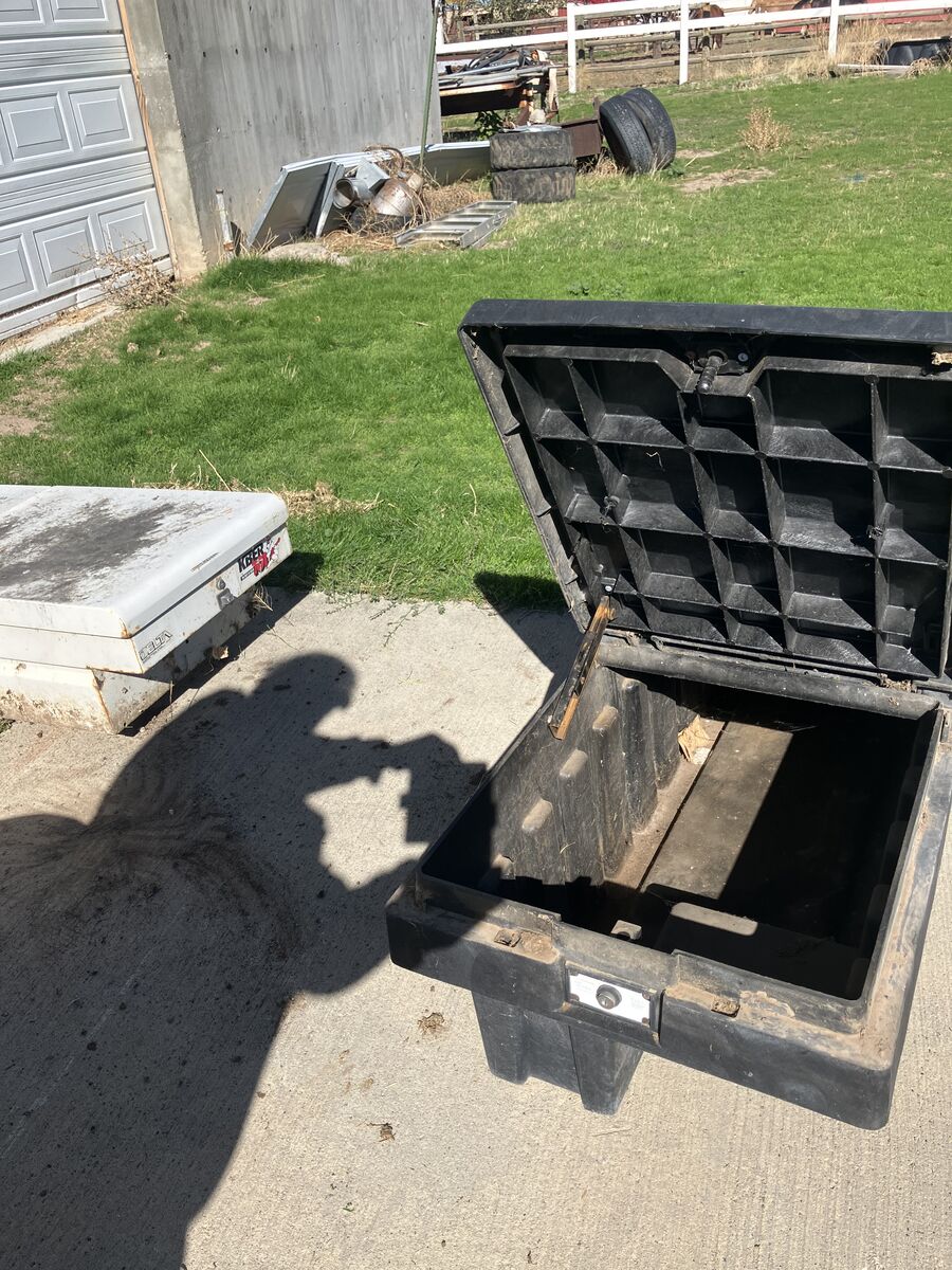 have one TUFF BOX plastic style truck bed tool box for sale and one DELTA metal bed tool box both good condition, asking $75 each or BEST OFFER