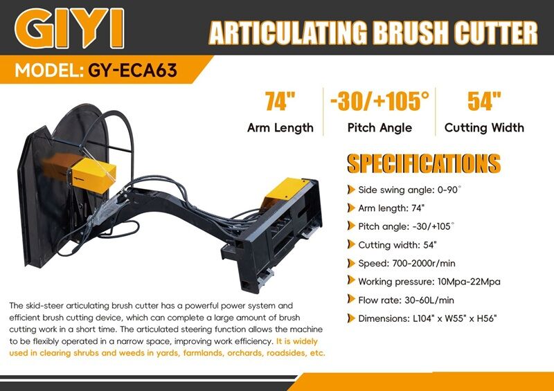 This is a New / Unused 2025 GIYI GY-ECA63 Articulating 54 in Skid Steer Mower