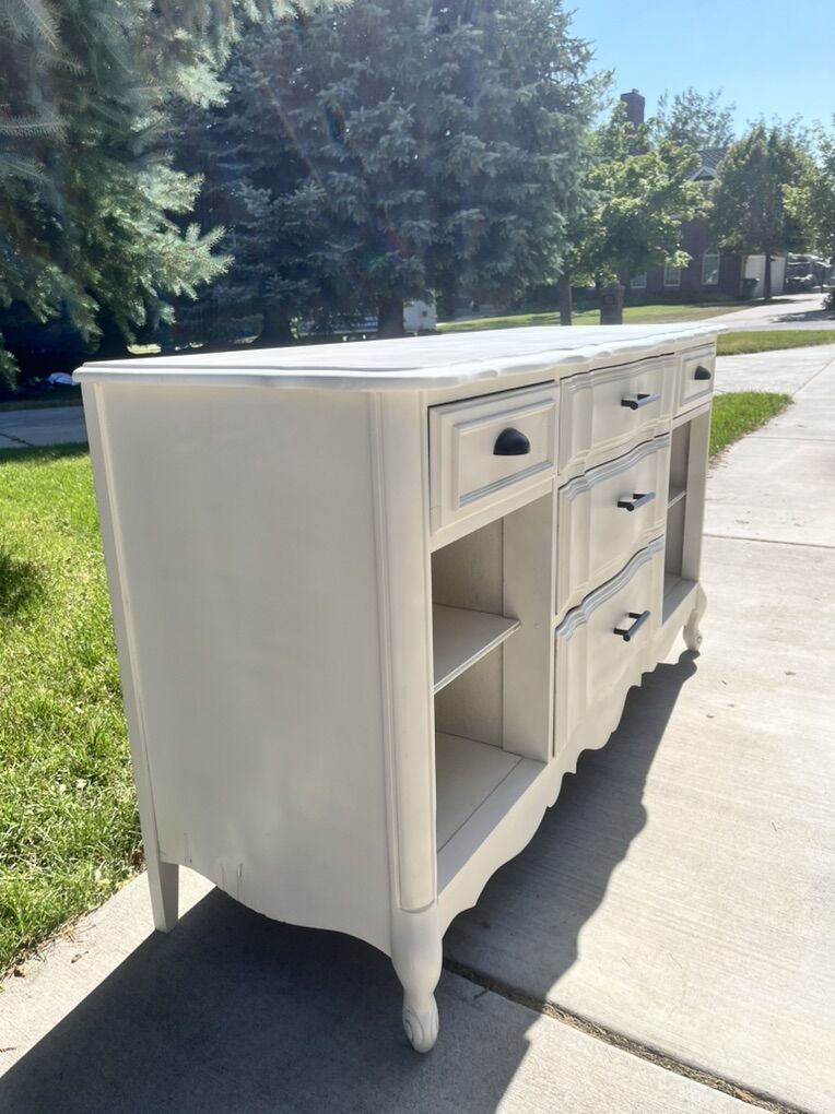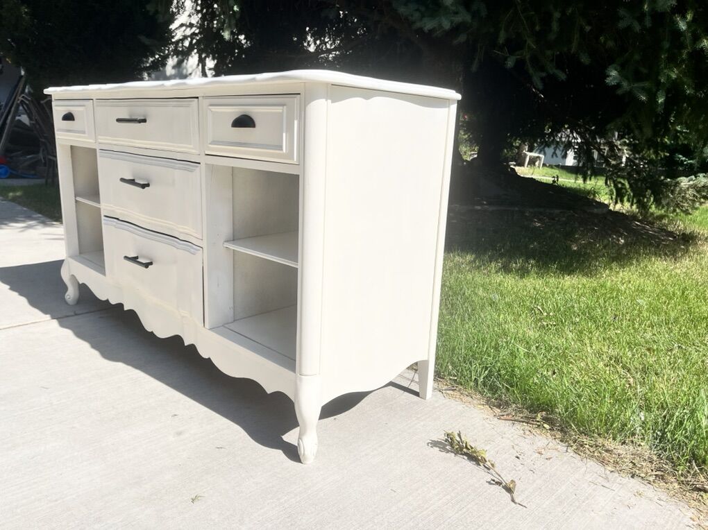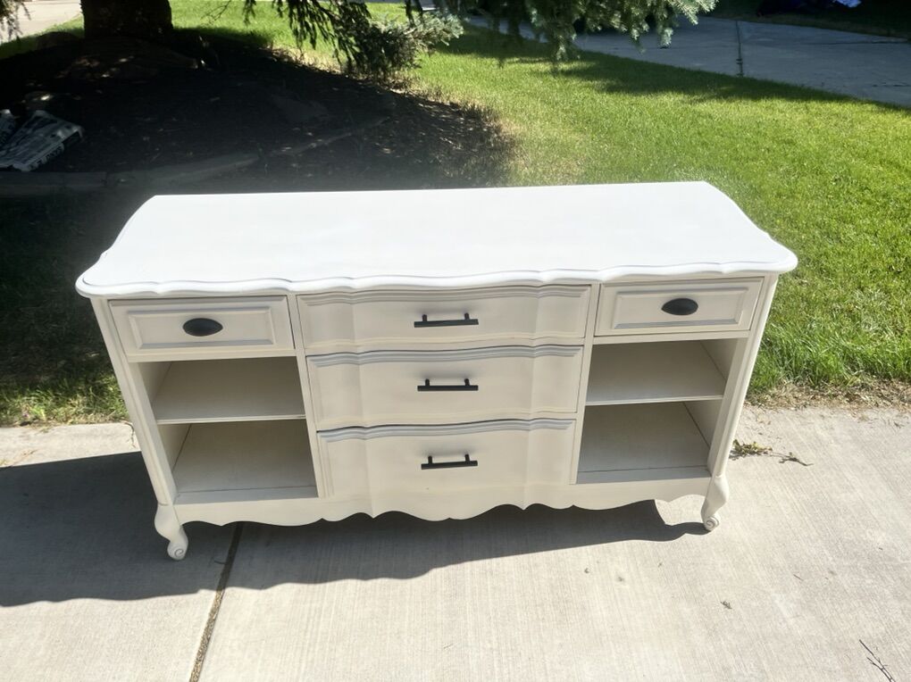 PayPalSturdy solid, wood country cottage vintage dresser, It has :Five drawers two cabinets two shelf spaces
