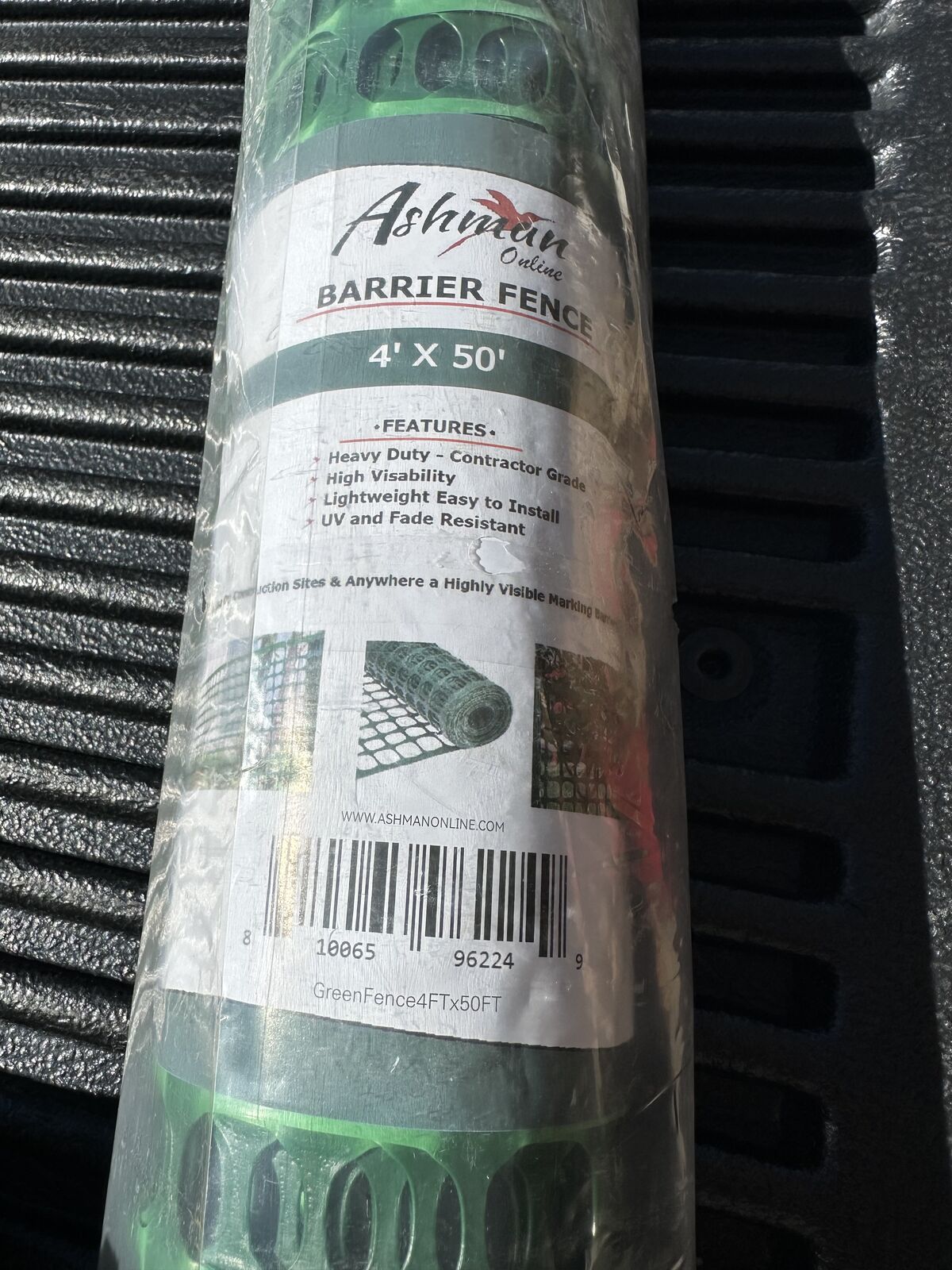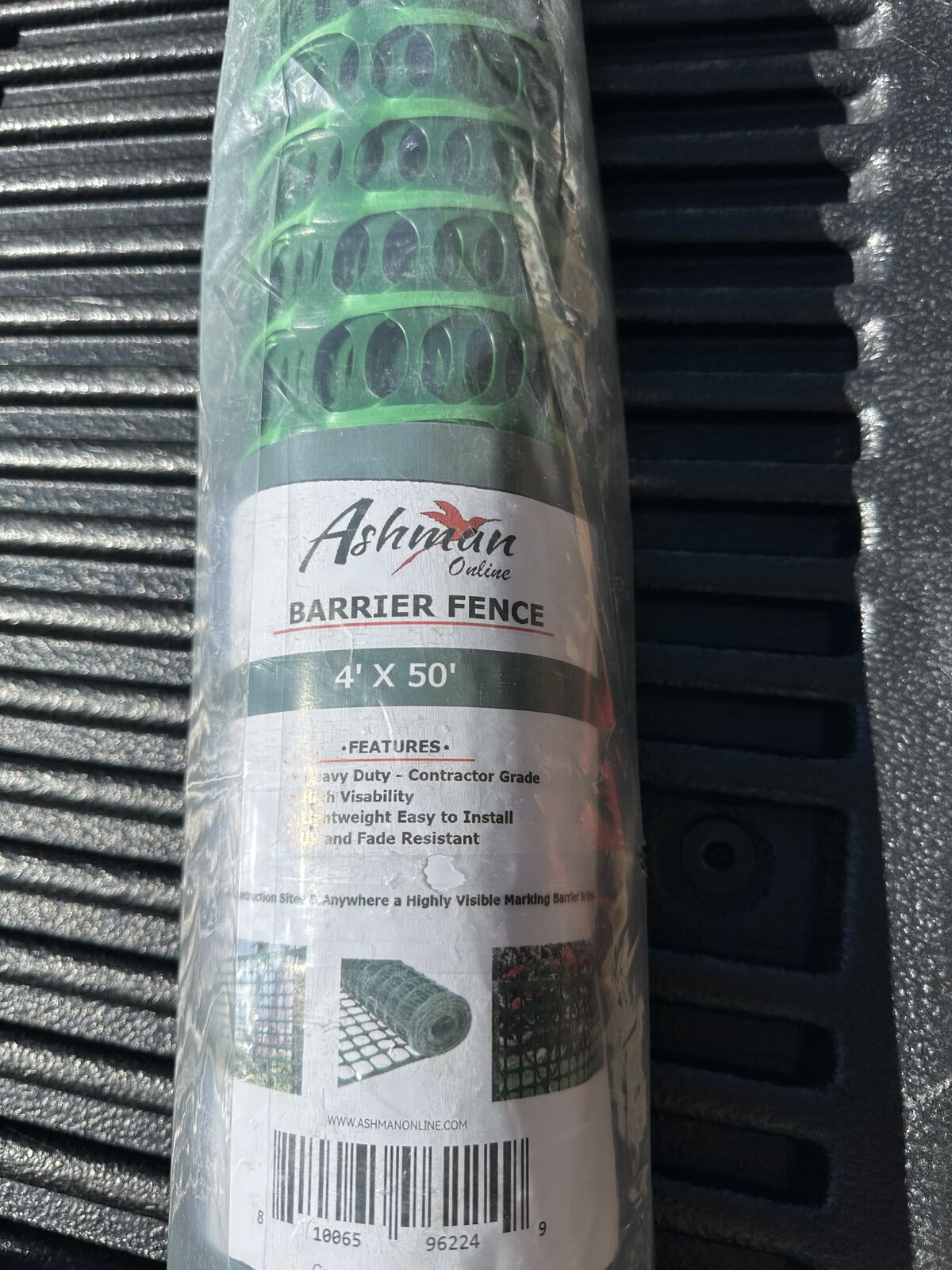 VenmoBrand new 2-rolls of barrier fencing. Ashman (green) 4'x50' and Orange (unknown brand) 4'x100'. Heavy duty, lightweight, high visability, and UV and fade resistant.