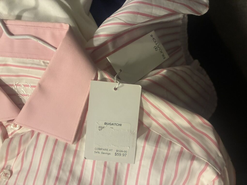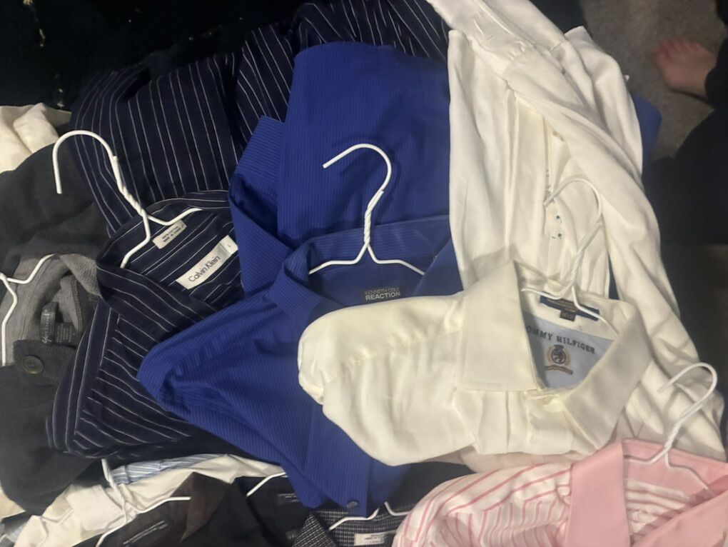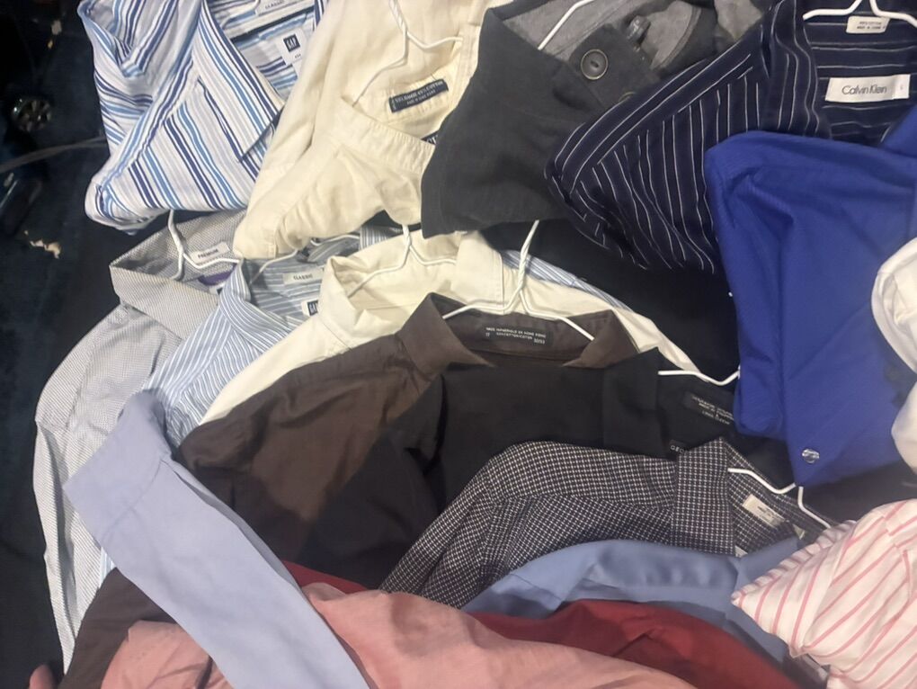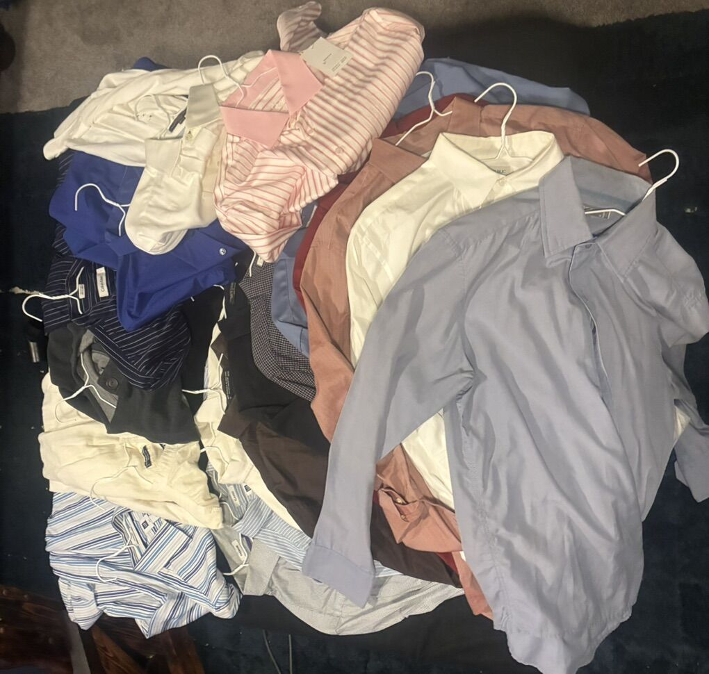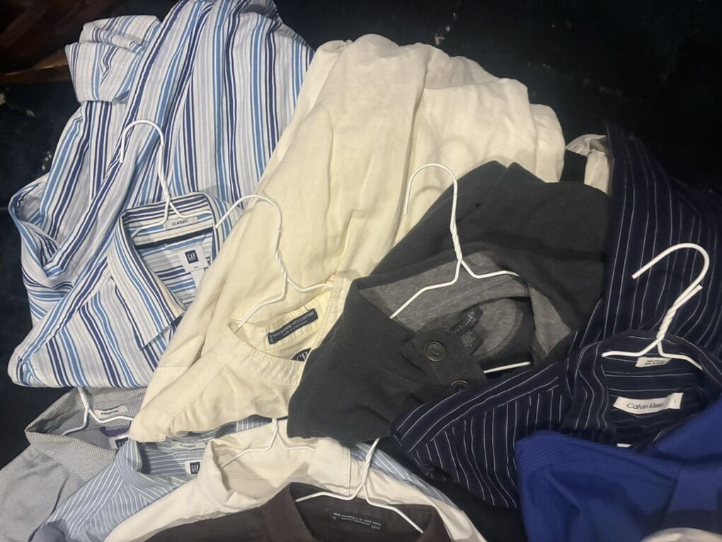 10 Large Men's Dress Shirts Name Brand. Couple are brand new including a $60 Bugatchi shirt and a Tommy Hilfiger shirt. All these for less than one shirt. There are Calvin Clein, Banana Republic, Gap, and more.