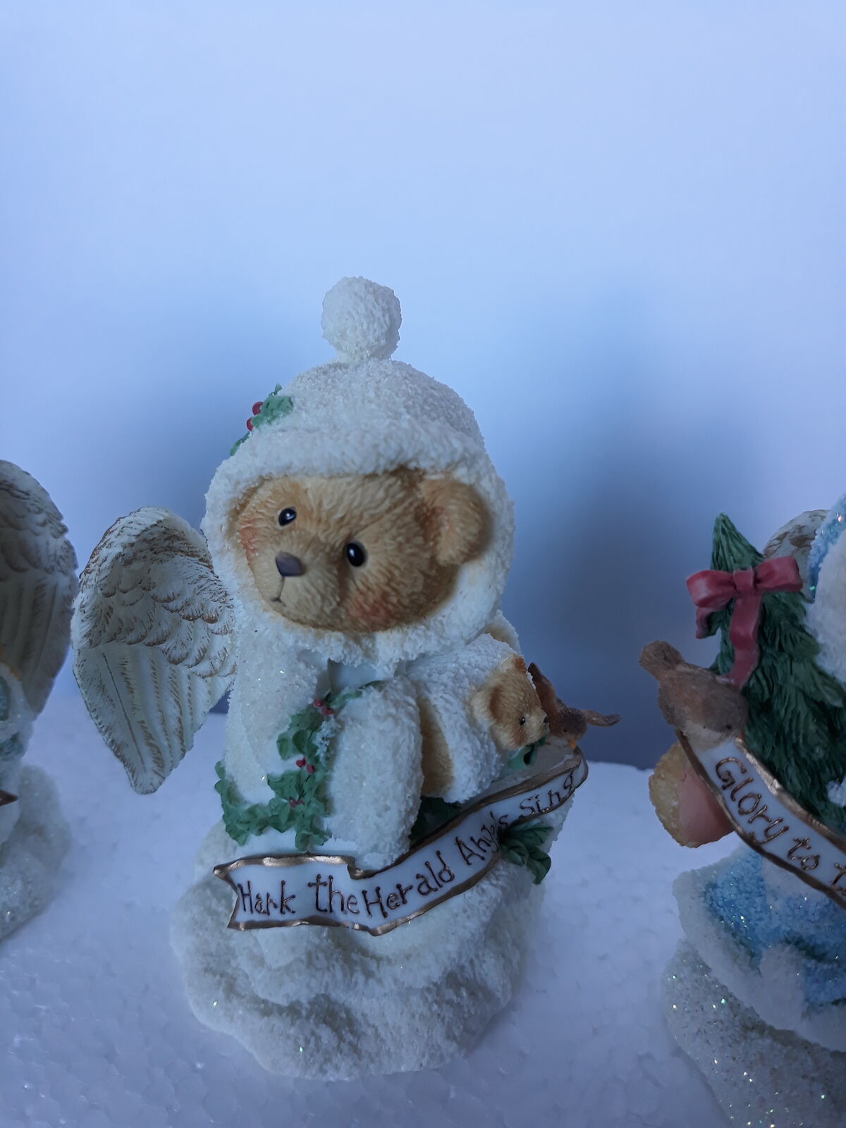 Adorable set of three Christmas angel bears made by Unesco. Cute enough to leave out all winter. See my other listings for more Christmas items. Phone calls or texts please. Cash only. Thanks for looking!