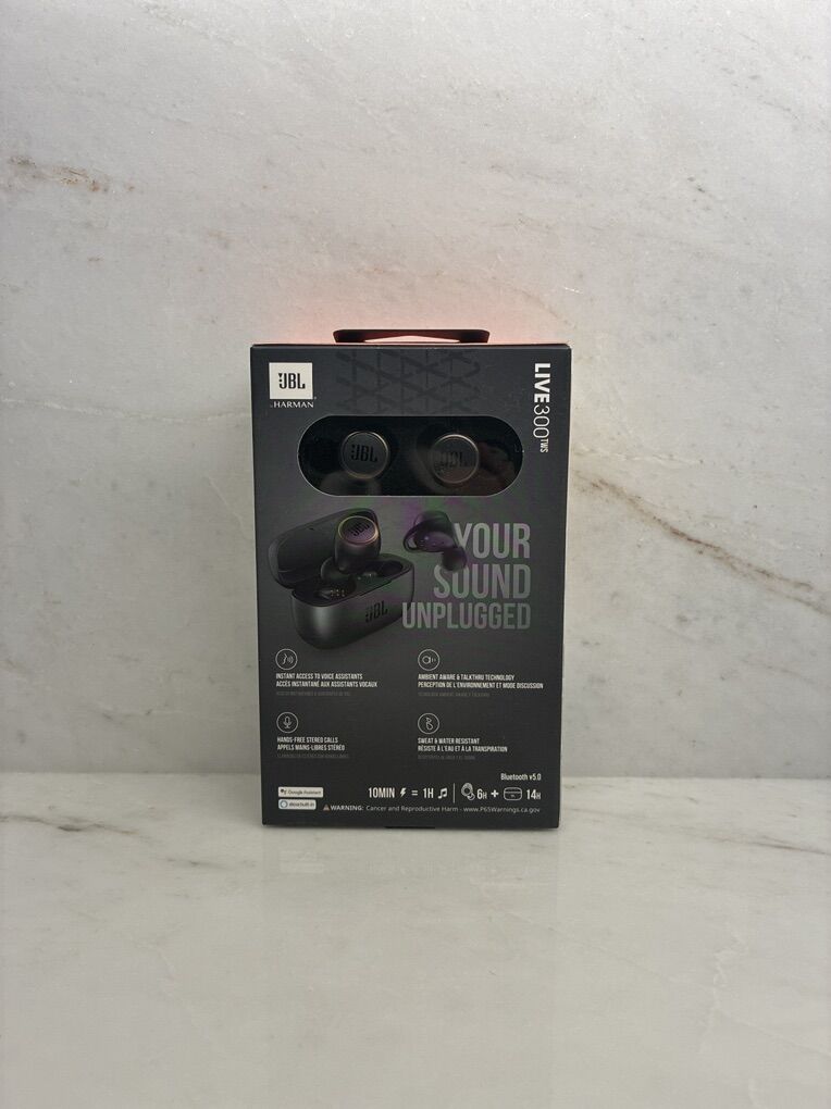 VenmoDescription: In selling 4 brand new, unopened pair of JBL by Harman 300 TWS wireless earbuds. Still sealed in the box — never used! These earbuds deliver high-quality sound with deep bass and clear vocals, perfect for music, calls, and workouts.