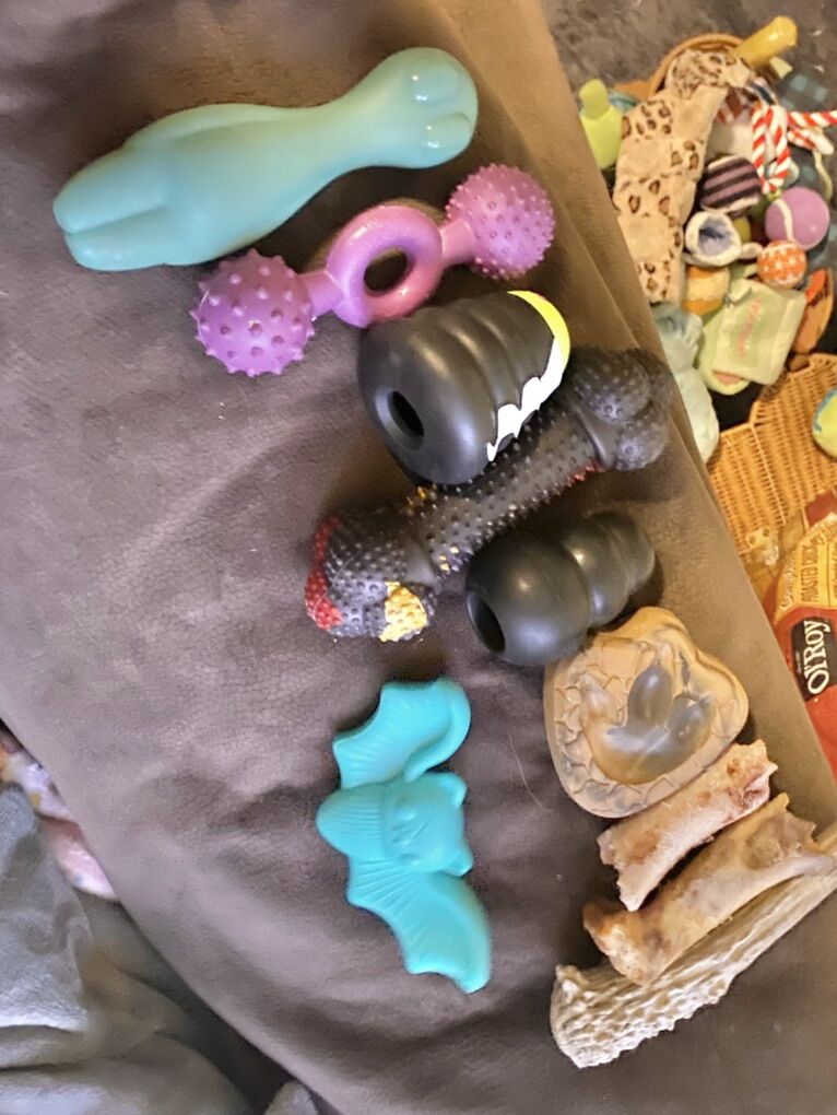 ApplePayFrom kongs, tug o war, crinkles and stuffies to squeakies and chew toys to even unopened treats, it’s all here! For only $5 each, or a whole basket for $50!