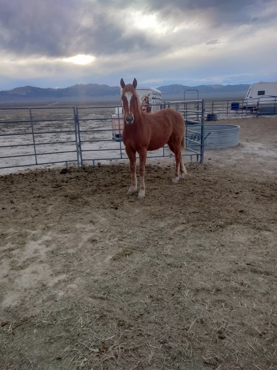 Sorrel yearling turbo Friesian colt, being sold grade. This guy is built like a tank, he'll be able to go any direction. His mother is a registered Friesian sport and his father was a palomino Arabian cross with Magnum Psyche and Padron Psyche in his lines, Unfortunately he passed away, I had the paperwork for registration but they never got turned in which is why this colt is being sold grade . Hasn't had much handling due to being born in the middle of moving but we're working on it and his price reflects being sold grade and no handling. He has been trailered, did well, he's got a cheeky personality and once he's been handled a little more he'll probably never leave you alone, I'm currently working with him, I can rub his face and down his neck, he's still skittish about the rest of him. Added new pics to show his growth. His mother is in the pics shown when he was born, the last two are of his sire. He's currently in montello NV, Text with any other questions.