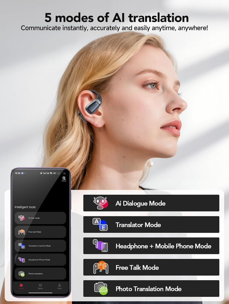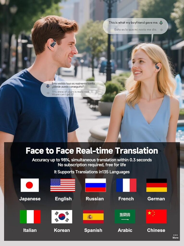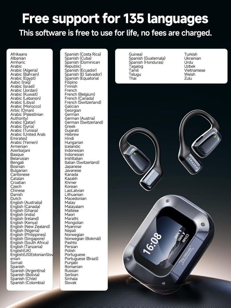 VenmoBrand new, AI Translation Earbuds Real Time, Language Translator Earbuds with LCD Touch Screen, Translation Headphones 3-in-1 Device Supports 135 Languages for Travel & Business, Compatible with iOS & Android