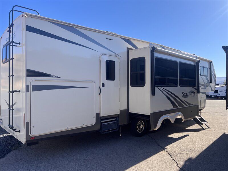 BUNK HOUSE Fifth Wheel! Welcome to the fifth wheel that is LARGE and IN CHARGE of your living or travel COMFORT! Known for luxury features, this Solitude 3740BH-R has a bath and a half, a bunkroom with four sleeping areas, and a center island sink in the kitchen. The living area has dual recliner units and an entertainment center with a TV and fireplace. In the front master bedroom, there's a queen bed, vanity, TV, and plenty of closet space that also has washer/dryer hookups. Plenty of storage is available with this RV inside and outside. Stop by Premier RV Brokers at 2705 S 60 E ( next to pilot truck stop ) Bloomington exit . Call or txt Wade 435-229-3484 Dan 435-862-7589 premierrvsales@gmail.com www.premierrvbrokers.com