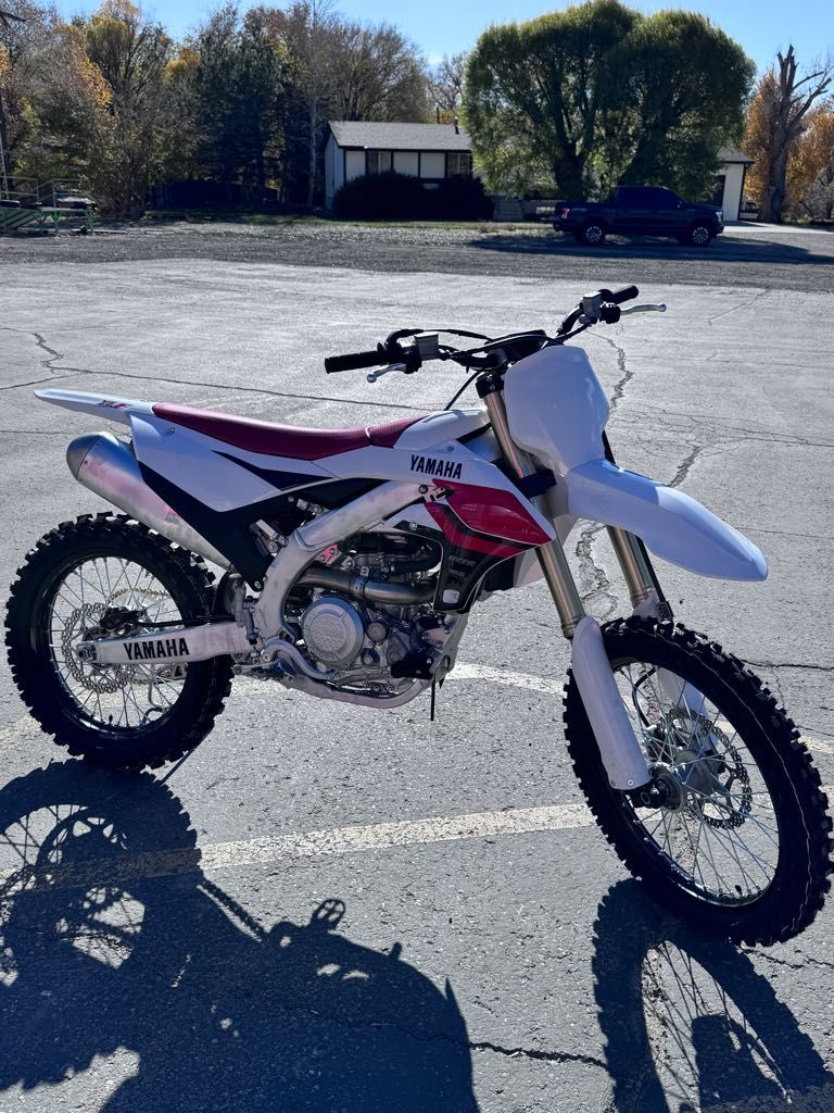 *Price does not include tax, license, or any other applicable fees* Engine Type: Single-Cylinder Displacement: 27.5 cu. in. (450 cc) Bore and Stroke: Bore: 3.82 in. (97 mm); Stroke: 2.39 in. (60.8 mm) Cooling: Liquid Compression Ratio: 13.0:1 Fuel System: Gas Front Suspension: Inverted Fork Front Brakes: Hydraulic Disc Front Tire: Dunlop® MX33F 80/100 R21 Rear Suspension: Twin Sided Swing Arm Rear Brakes: Hydraulic Disc Rear Tire: Dunlop® MX33 120/80 R19 Fuel Capacity: 1.6 gal. (6.1 L) Wheelbase: 58.1 in. (1475.7 mm) Ground Clearance: 13.6 in. (345.4 mm) Seat Height: 38 in. (965.2 mm) Trail: 4.8 in. (121.9 mm) Rake: 27.5 Transmission: Manual
