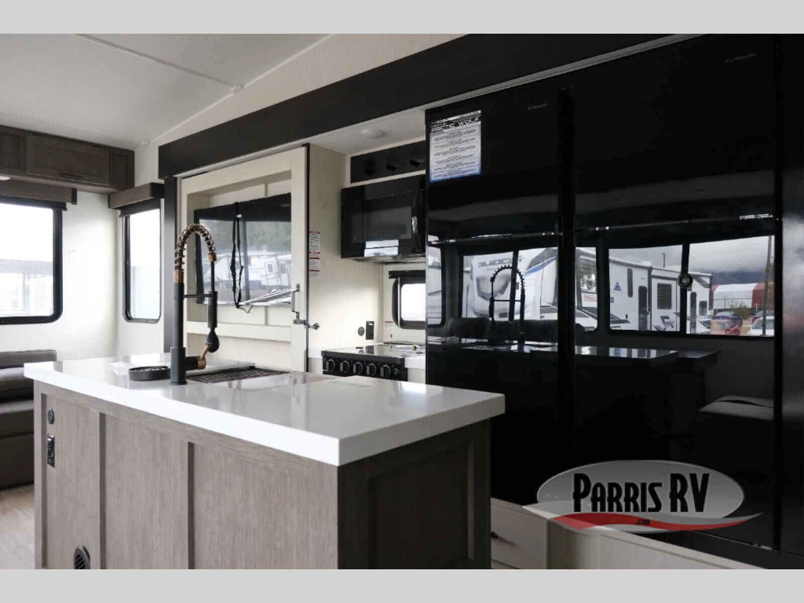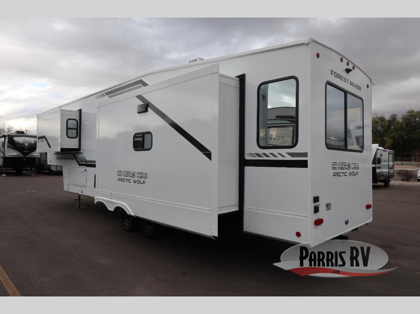 You will have amazing residential comfort in the Forest River Cherokee Arctic Wolf fifth wheels! These bed slide units have a "SuperStor" basement storage compartment to allow you to bring more gear, and they have been constructed with a "ToughBend" rigid skirt metal design, a 1x engineered wood "SuperTruss" roof structure with 3/8" decking, and a 5/8" tongue-and-groove plywood floor decking. Each model includes Leash Latch pet safety technology, an outside shower with hot/cold water, preparations for an exterior TV, and Super-Lumen Lighting System with Dimmer. The supersized central air conditioning unit (15,000 BTU) with quick cool and second oversized 15,000 BTU ducted A/C will cool your unit down in a snap when you camp in the hot summer months.