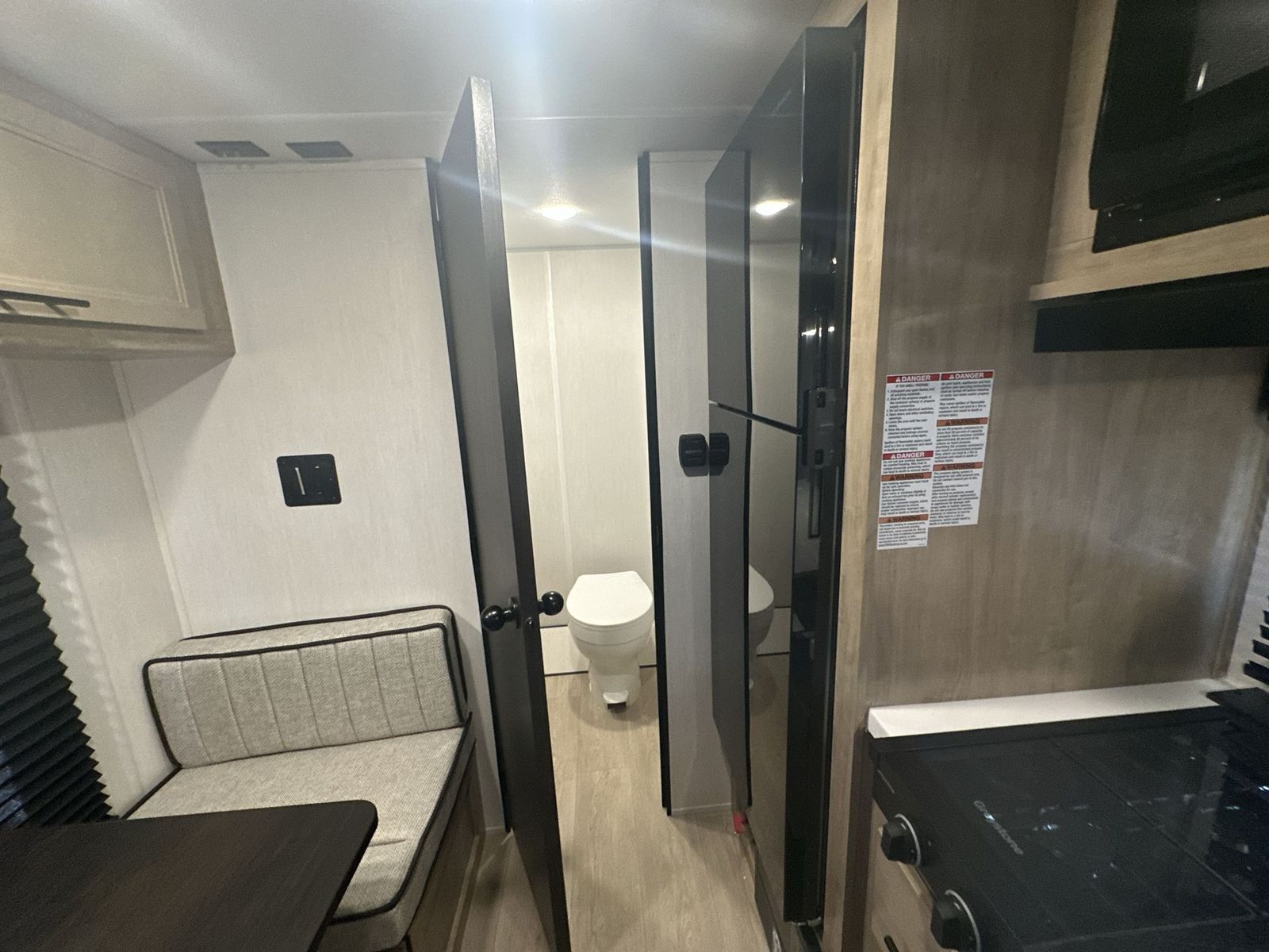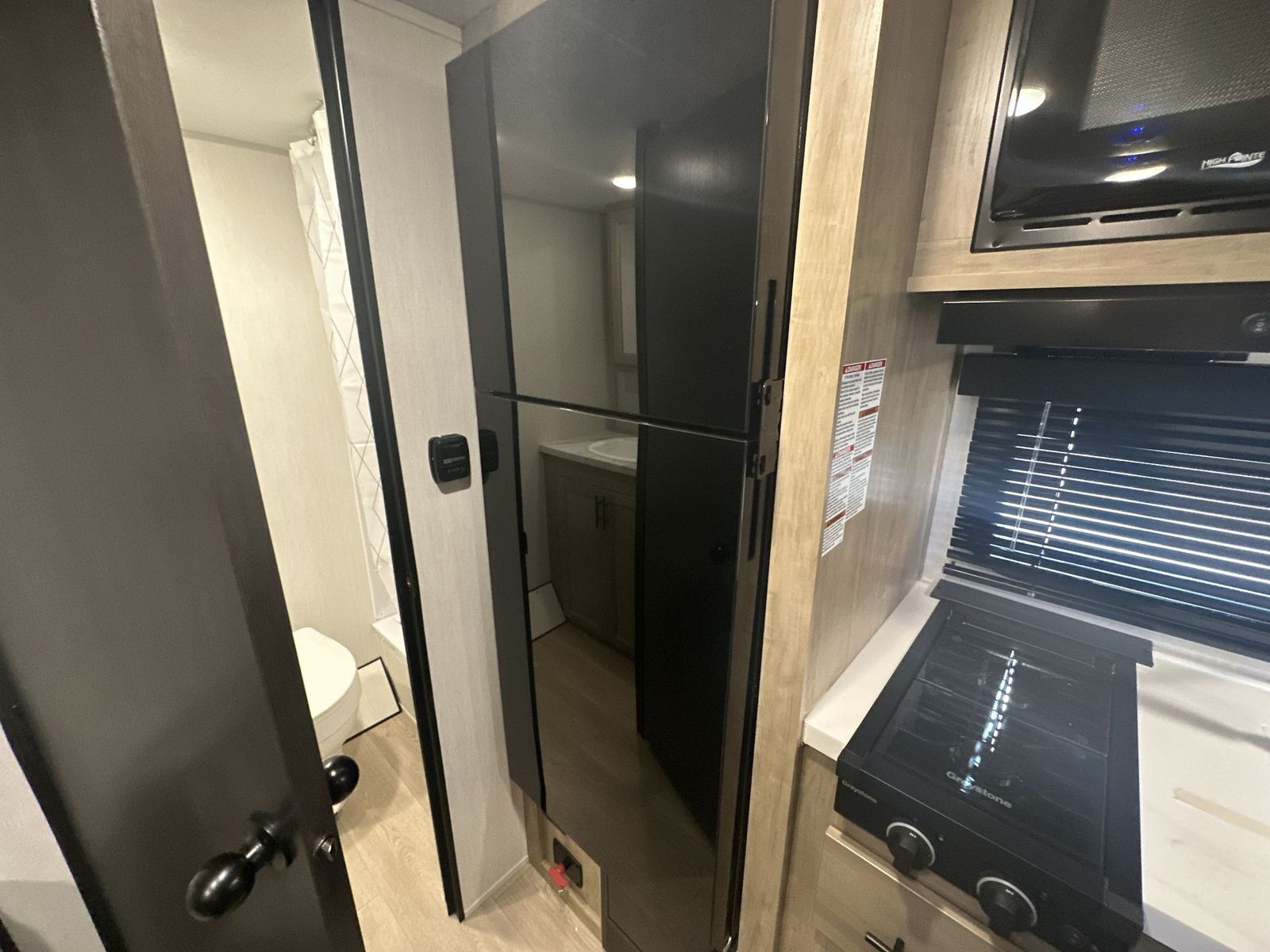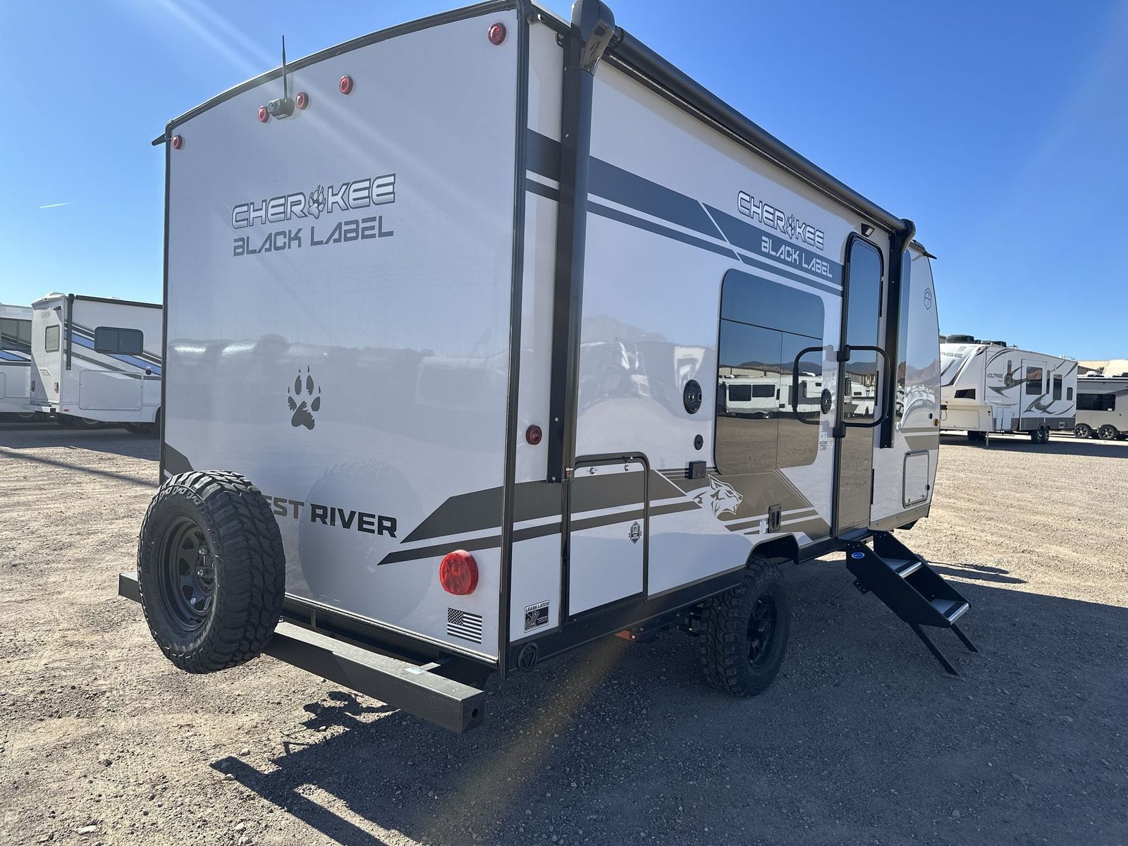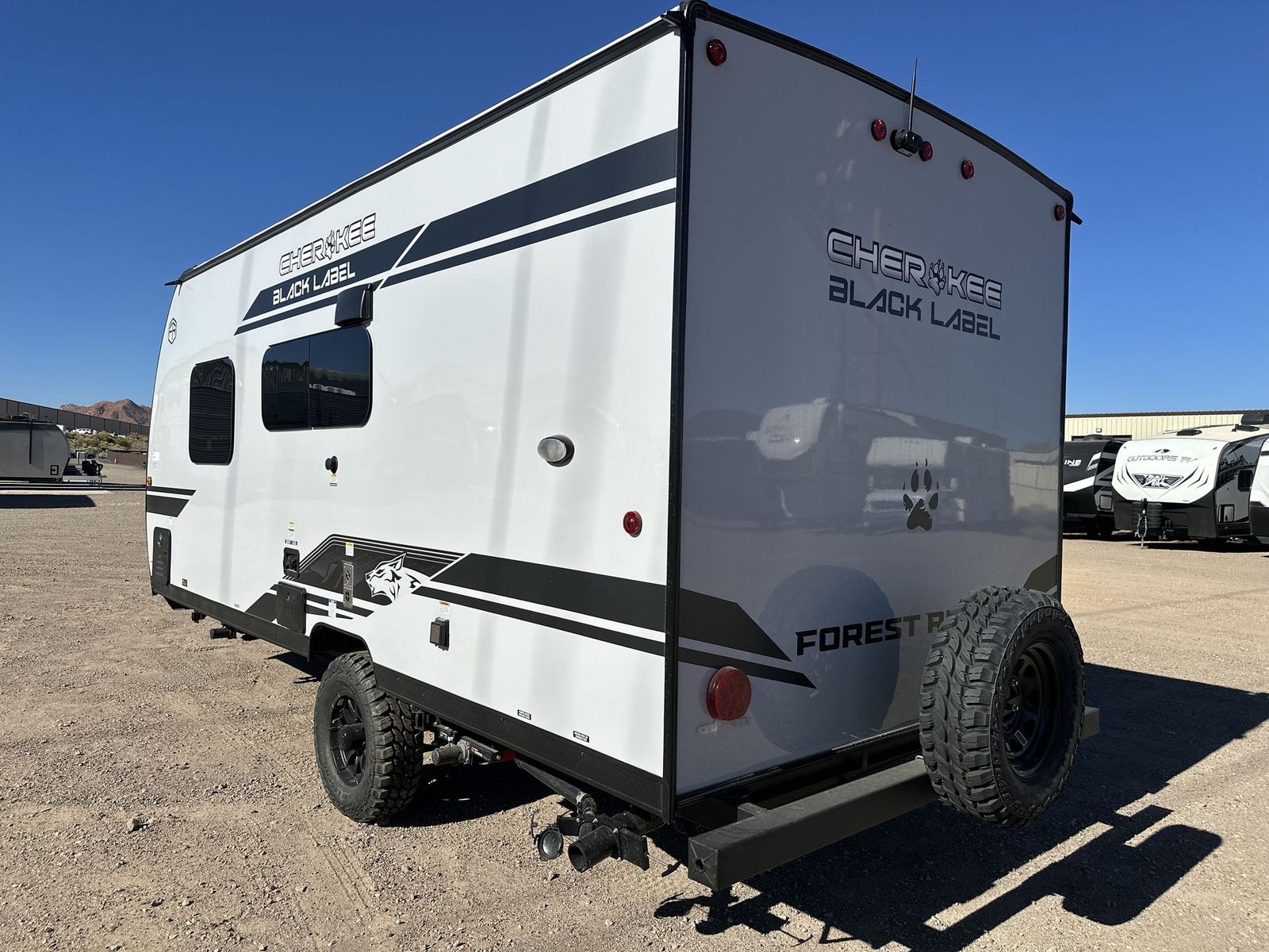 Forest River Cherokee Wolf Pup Black Label travel trailer 16FQBL highlights: Rear Bathroom Booth Dinette Outside Mini Kitchen USB Ports You will love camping in this travel trailer with your own walk-aroundqueen bed up front, plus a full rear bathroom with a tub/shower, toilet, and sink. Fill your bellies with the perishables stored in therefrigerator and cook them on the cooktop. You could even prepare a meal while breathing in some fresh air at the outside mini kitchen while staying protected by the 12' awning. This travel trailer also includes outside storage to keep camp gear tucked away! Each one of these Forest River Cherokee Wolf Pup Black Label travel trailers and toy hauler are lightweight and easy to tow! They are fully self-contained with ample tank capacities, an abundance of storage space, and filled with at home amenities. The full bath and kitchen amenities will make life at the campground easier than ever, and the outdoor patio awning will provide an inviting outdoor space. And you're sure to enjoy the Black Label upgrade with fiberglass gel coated side walls, frameless windows, upgraded solid surface countertops, and more stand-out features!