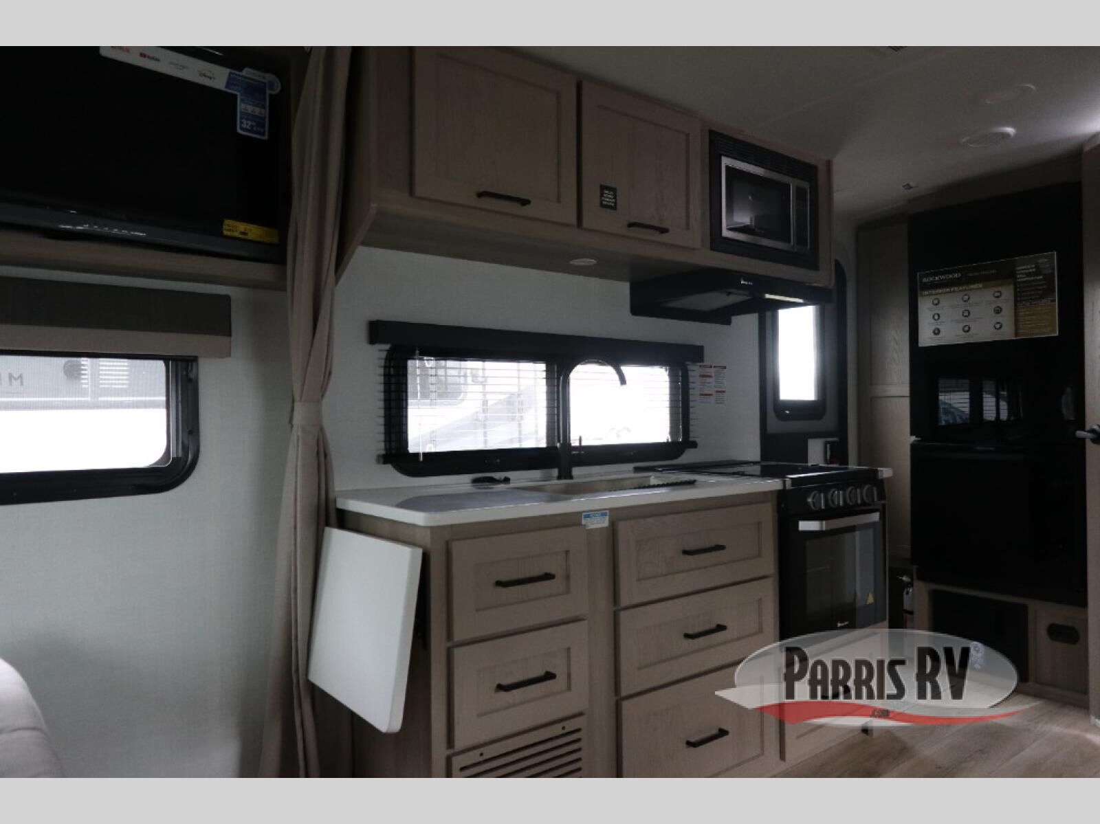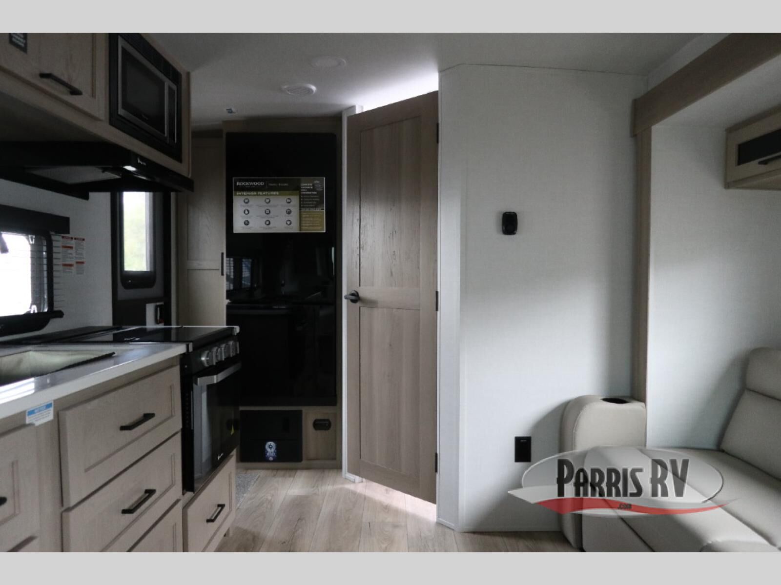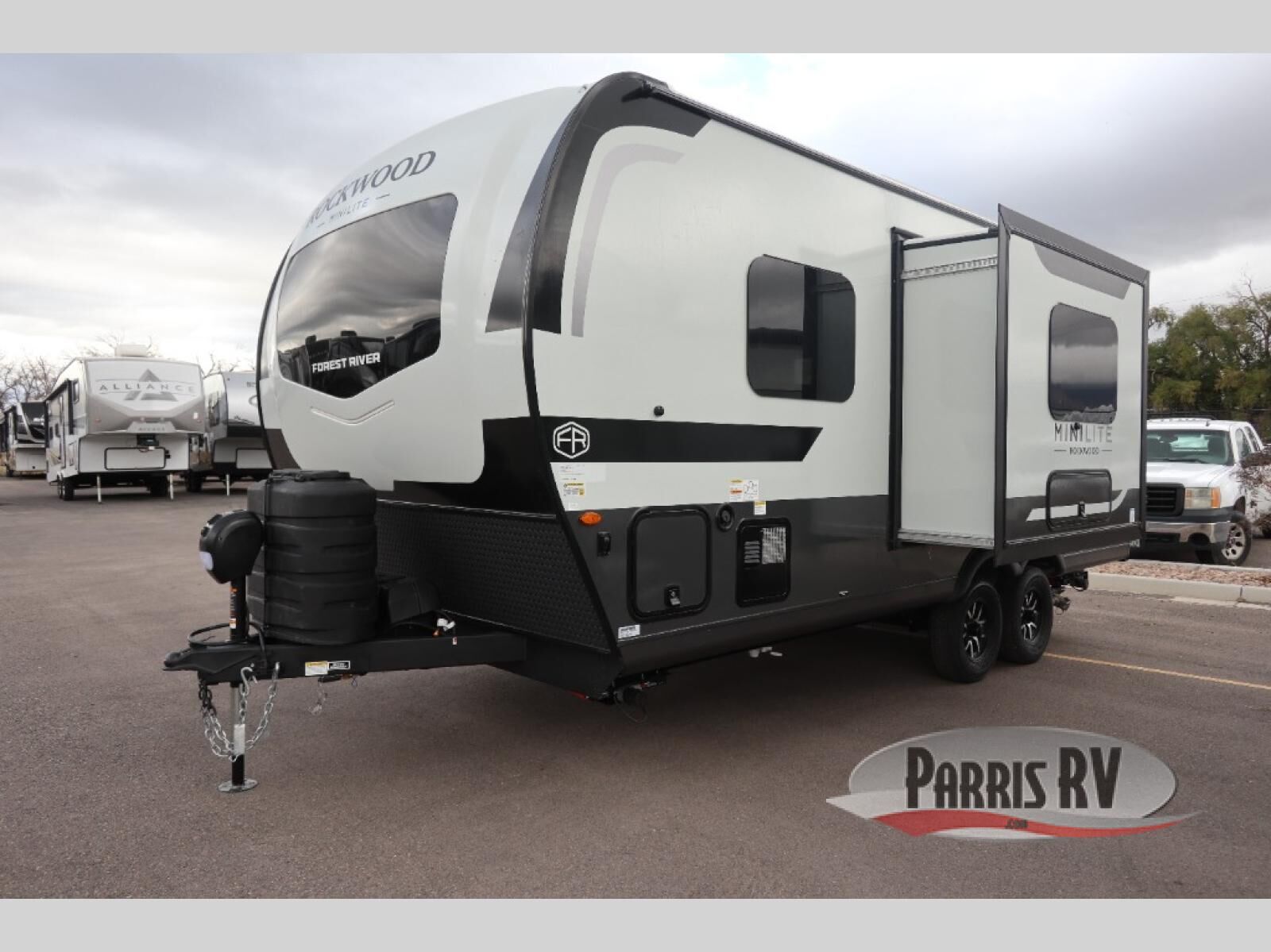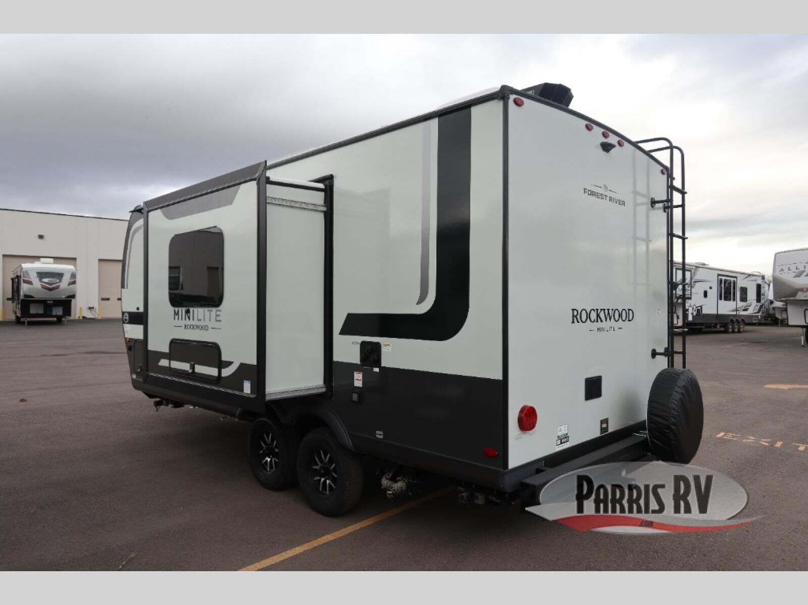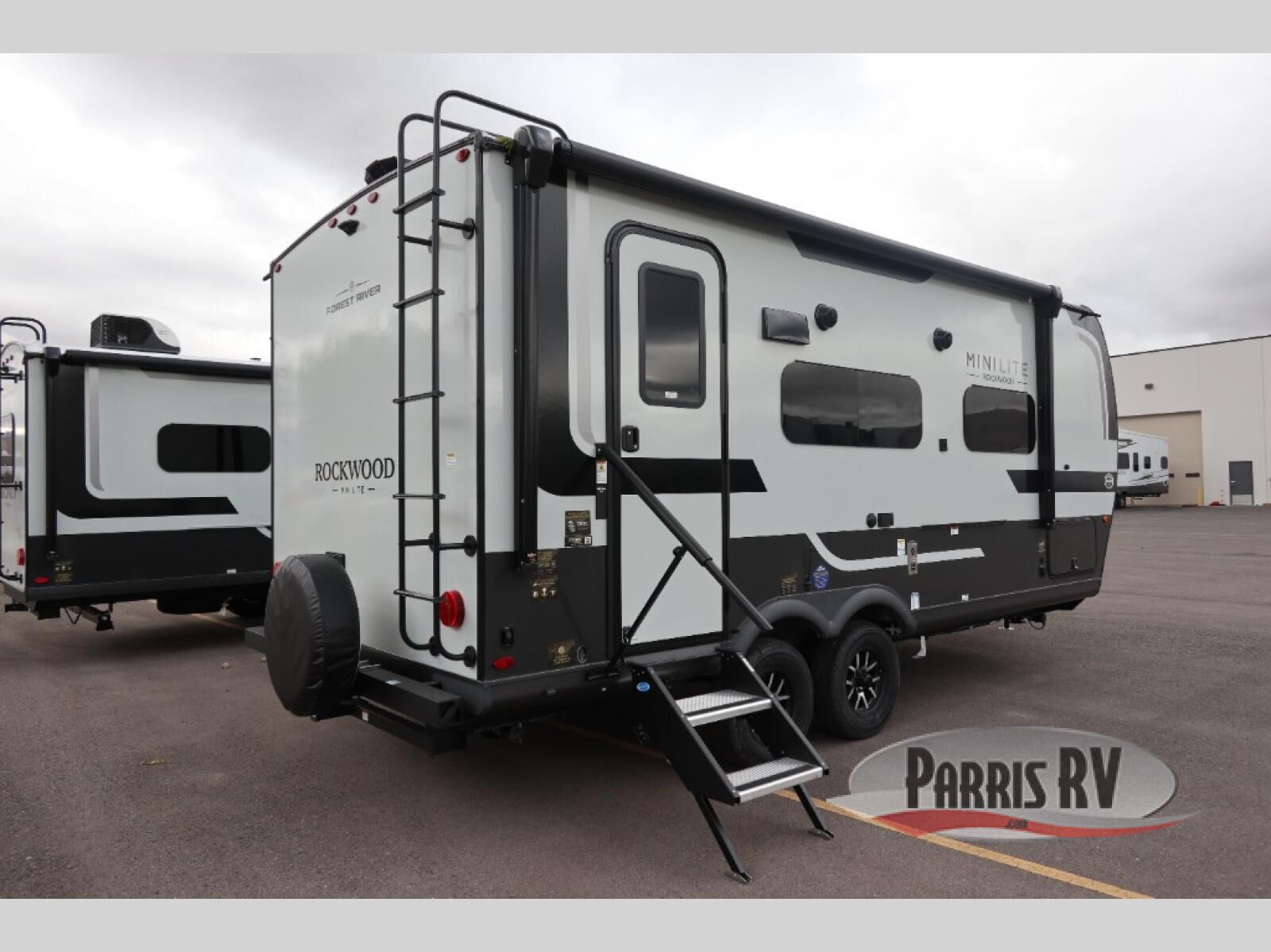 Each Rockwood Mini Lite travel trailer by Forest River is constructed with a fully laminated one-piece walkable roof, sleek frameless windows, and a six-sided full aluminum frame for strength and durability. The 12V thermostatically controlled heated tanks, plus radiant foil in the underbelly will allow you to camp well into the colder months, and the 200W roof solar panel will be perfect for a little off-gridding. Each model includes solid surface kitchen countertops, hidden hinge cabinet doors, roller shades, plus many more interior features. Having an AIR 360+ omnidirectional antenna with WiFi prep on board gives you the option to get some work done if it's needed, and the power tongue jack provides hassle-free set up, so you can enjoy more time relaxing!