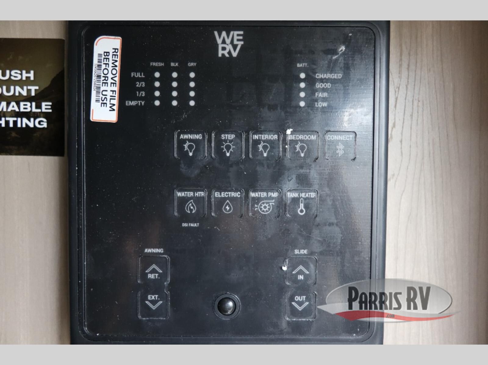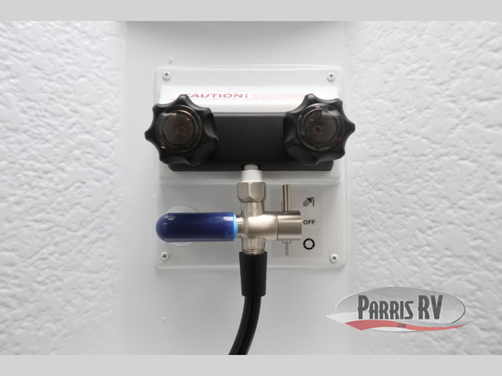 Wherever you decide to camp, you will love every minute in this cute couple's trailer. The sofa slide with a table will provide a place to relax, eat, and even sleep an extra guest if you have one, and the front RV queen bed includes a privacy curtain to enjoy your own space. There are dual bedroom wardrobes to keep your clothes tidy, and you'll find two pass-through storage compartments for your larger gear. An outside griddle with an LP hookup will allow you to make breakfast outdoors, and there is a three burner cooktop indoors if the weather isn't cooperating. Since there is a full bath on board you won't have to use the camp's facilities, and you can make it a movie night with the 32" TV in the main living area!