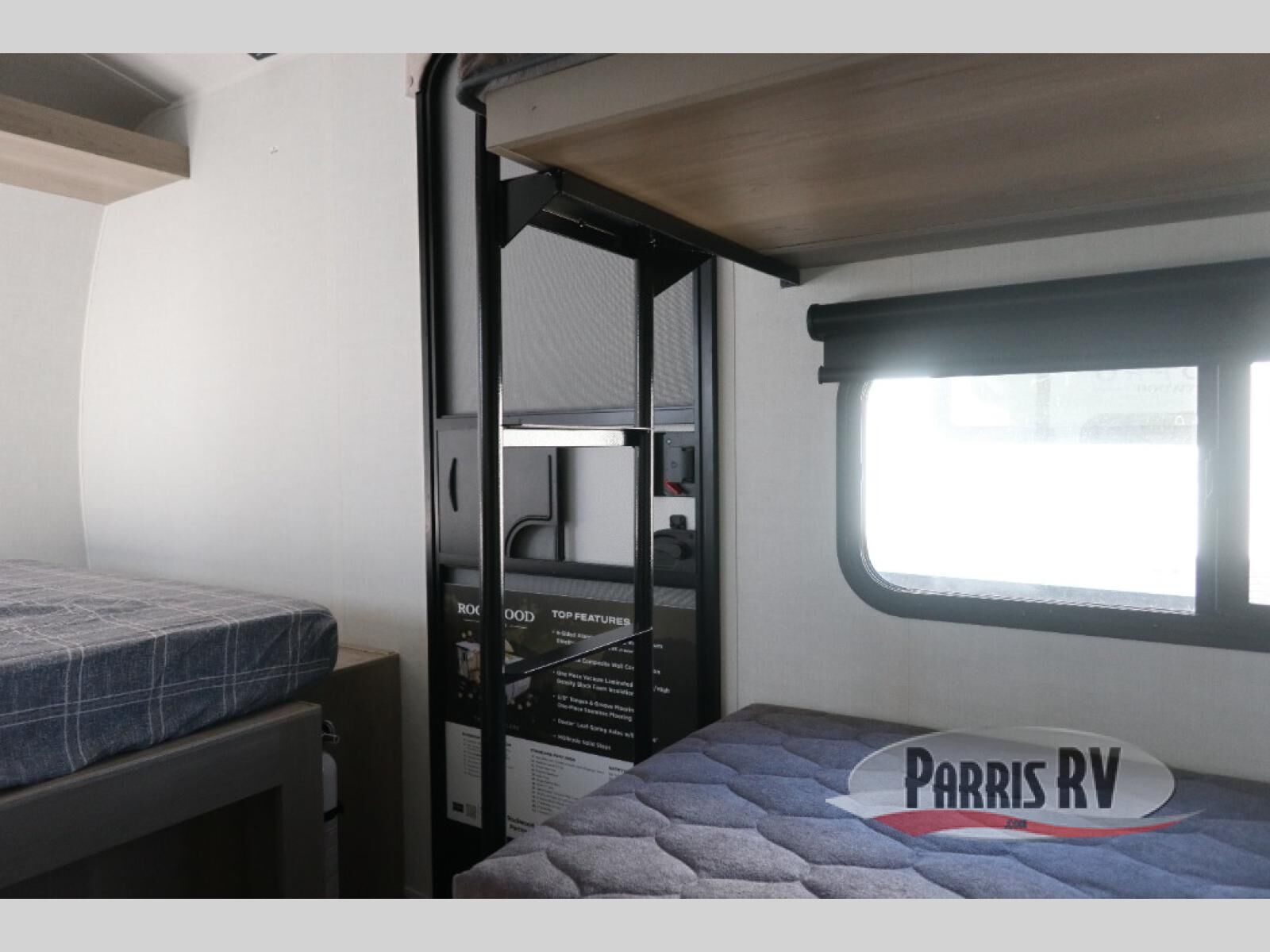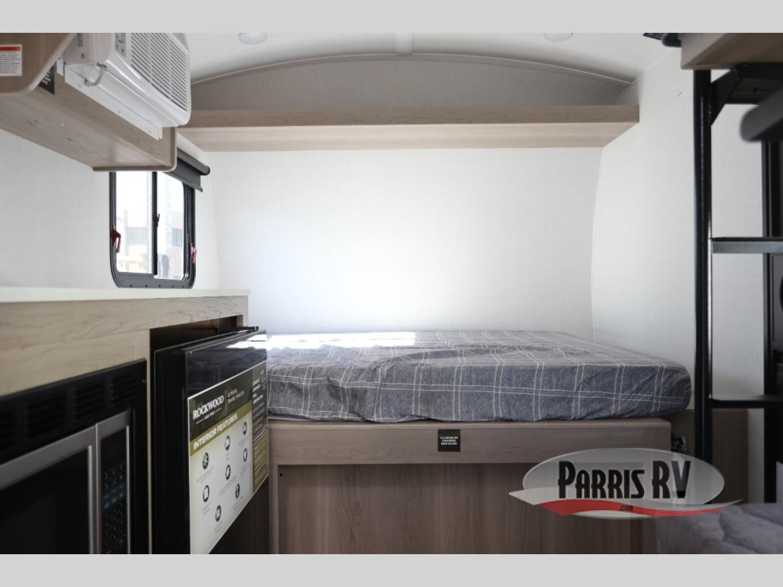 Perfect for couples, families, or friends, this trailer offers a comfortable and functional space to relax, recharge, and explore. The full bathroom is a serene retreat, equipped with everything you need to refresh and rejuvenate after a day of adventure. The two bunk beds give a snug and inviting sleeping spot, perfect for kids or adults looking for a cozy spot to rest. The kitchen is equipped with a microwave for quick and easy meal prep, and a fridge to keep your favorite snacks and drinks fresh. Overhead cabinets provide plenty of storage for your gear, cookware, and essentials, keeping your trailer tidy and organized. The bed offers a restful sleeping space, perfect for unwinding after a long day of exploring.