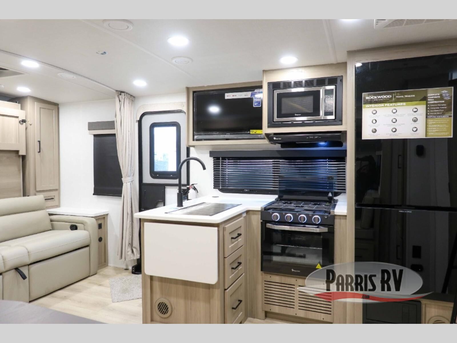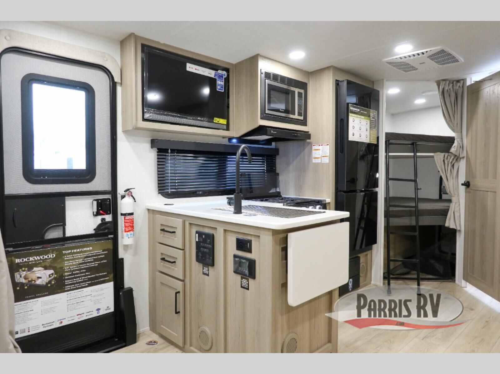 Each Rockwood Mini Lite travel trailer by Forest River is constructed with a fully laminated one-piece walkable roof, sleek frameless windows, and a six-sided full aluminum frame for strength and durability. The 12V thermostatically controlled heated tanks, plus radiant foil in the underbelly will allow you to camp well into the colder months, and the 200W roof solar panel will be perfect for a little off-gridding. Each model includes solid surface kitchen countertops, hidden hinge cabinet doors, roller shades, plus many more interior features. Having an AIR 360+ omnidirectional antenna with WiFi prep on board gives you the option to get some work done if it's needed, and the power tongue jack provides hassle-free set up, so you can enjoy more time relaxing!