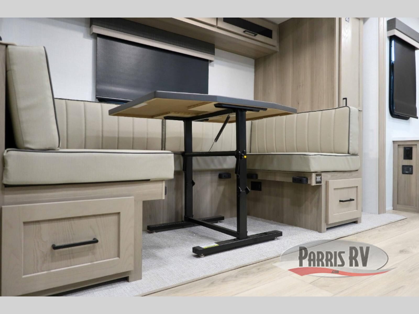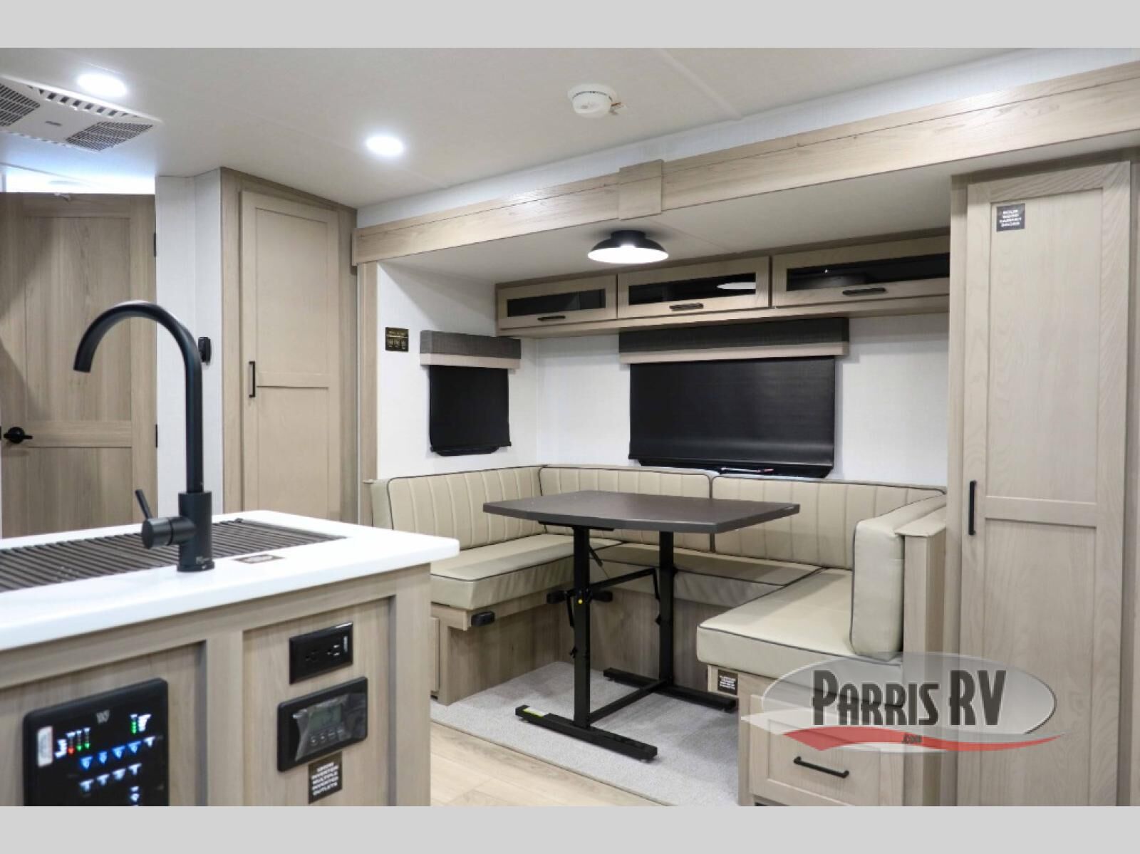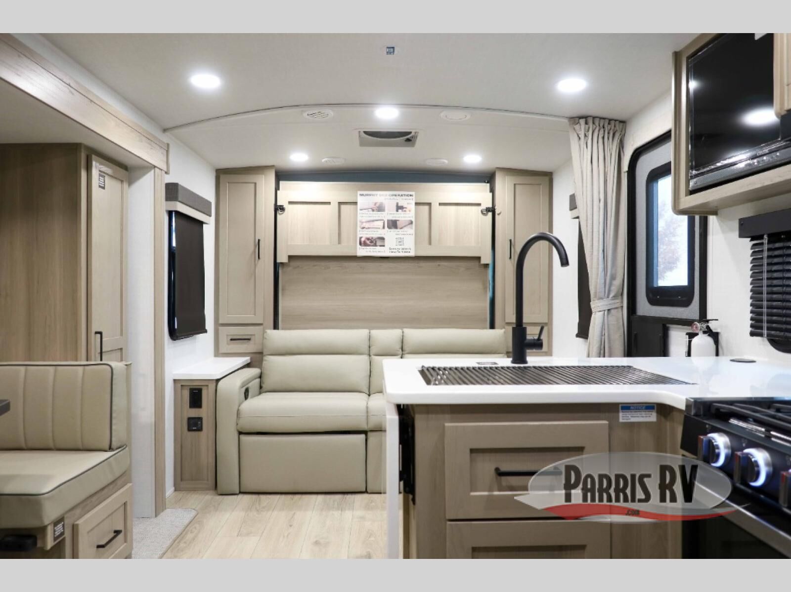 Finally, a lightweight travel trailer with double-size bunks for the kids or your guests! You'll find the versatile Murphy bed up front will be super convenient when you need more space to move around, and the 72" sofa will provide comfy seating space when the bed is put up. This model also includes a U-shaped dinette slide perfect to dine around, play games, and sleep additional guests. A 32" TV in the main living area will allow you to watch your favorite shows in the evenings, or you may just find yourselves outdoors under the 18' power awning with LED lights. And check out the pass-through storage, plus additional exterior storage for your hiking gear!