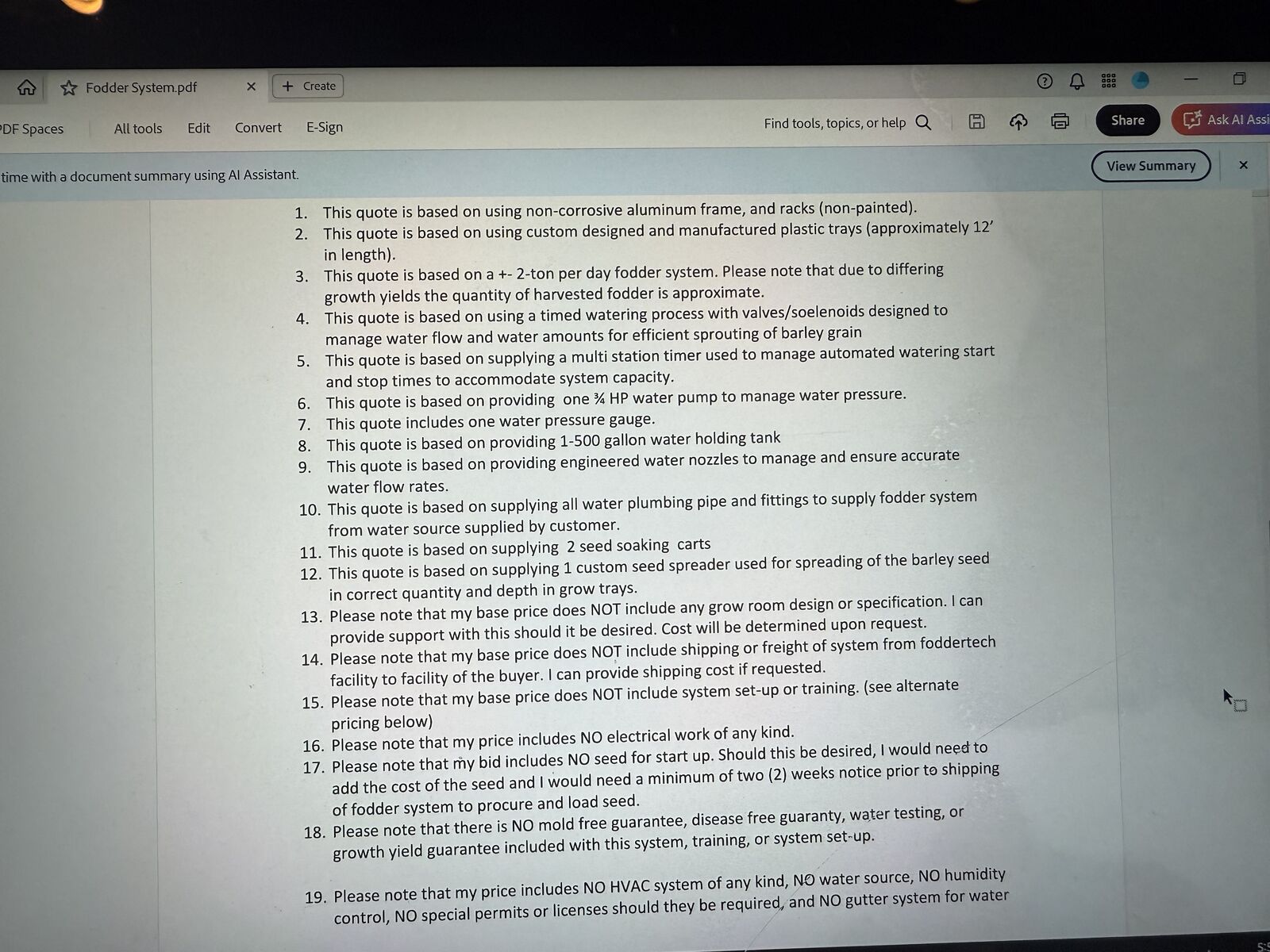 Complete fodder system that produces 2 tons of clean fodder for cattle or horse feed. See video below for actual demonstration.