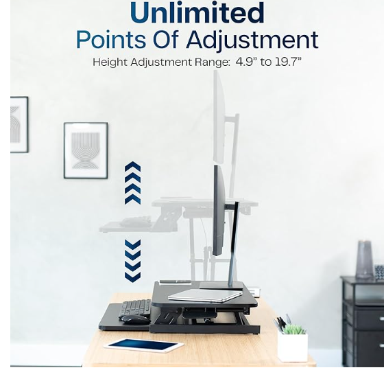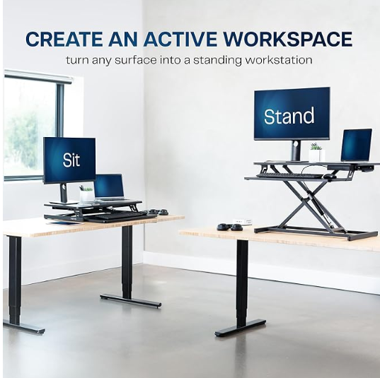 VIVO Height Adjustable 32 inch Stand Up Desk Converter, Quick Sit to Stand Tabletop Dual Monitor Riser Workstation, Black, DESK-V000S