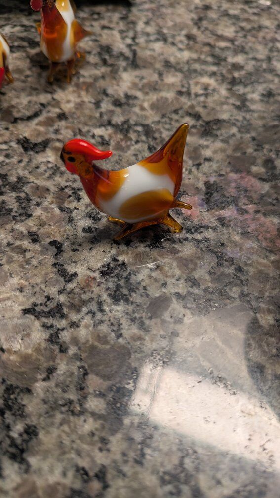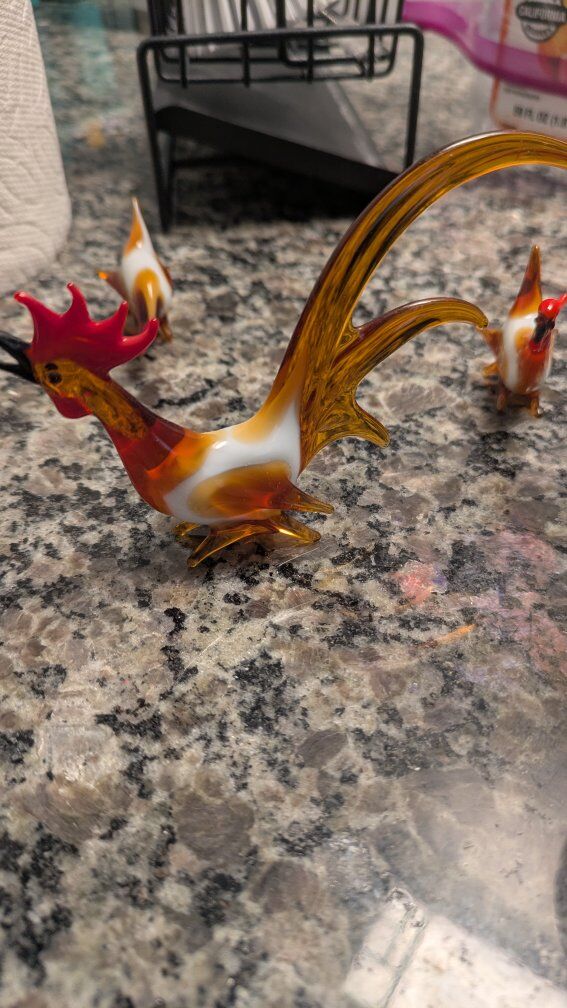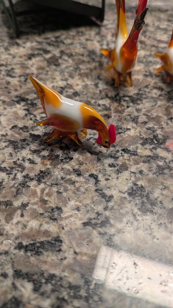 Glass Hen with 2 chickens. It's a miniature set. Text if interested. Asking $8.00 for the set