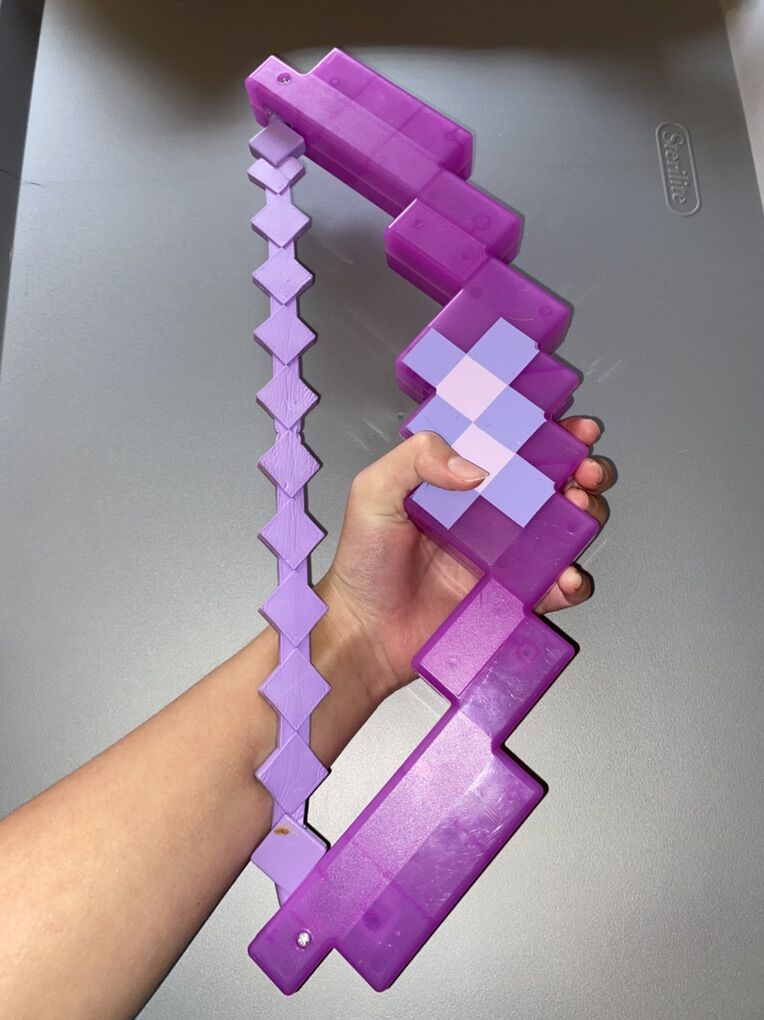 ApplePayThis is a fun toy for your child. It comes with an enchanted bow, a poison arrow, and an ender pearl. It can shoot the arrow but it doesn’t go too far. It is used, but it is still usable. The arrow is a little slanted but it doesn’t mess anything up. This is a great toy for your minecraft loving kid.
