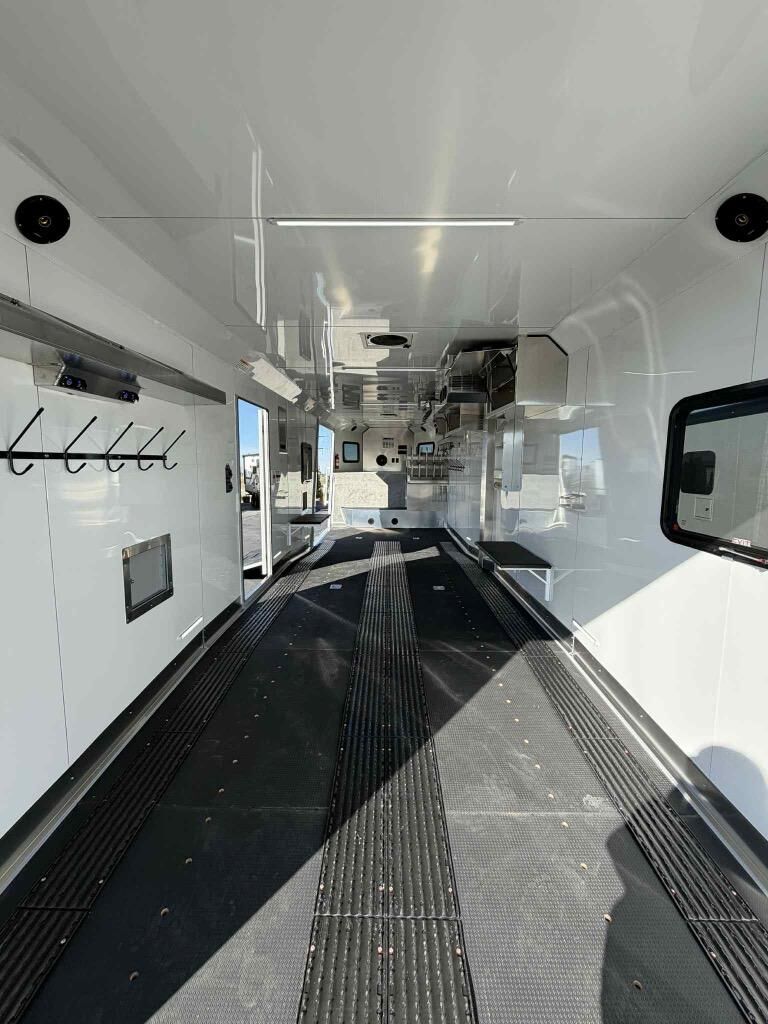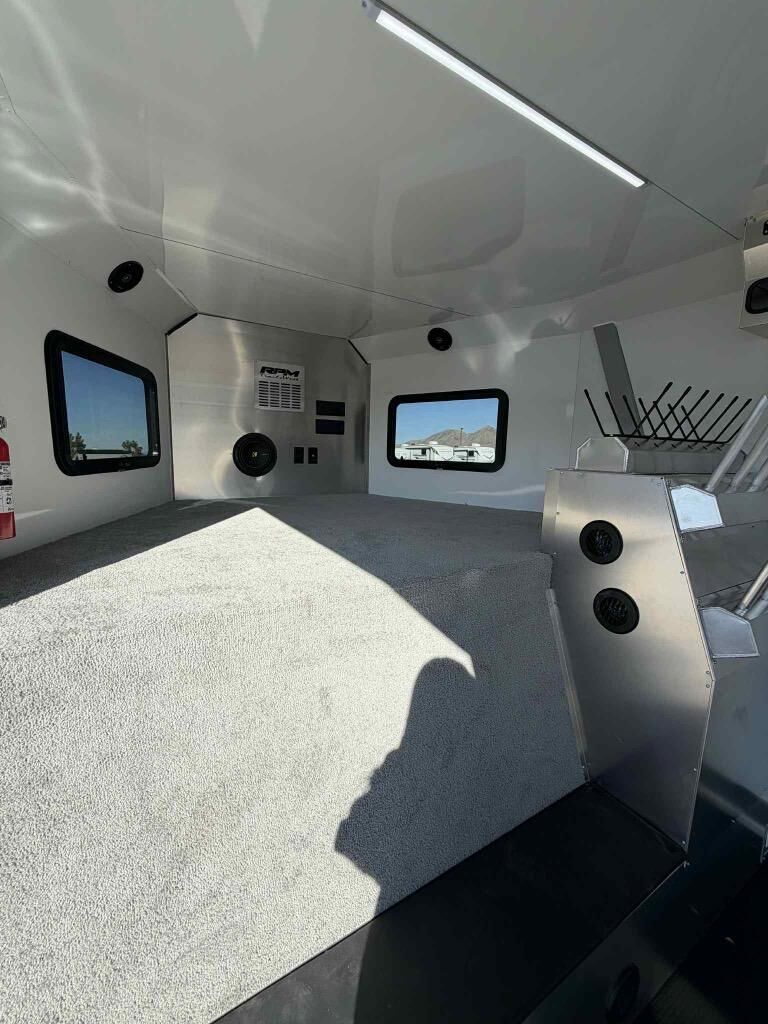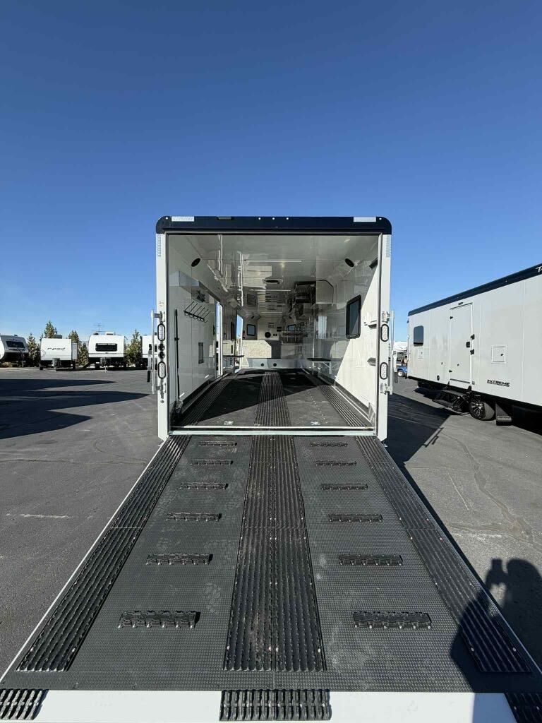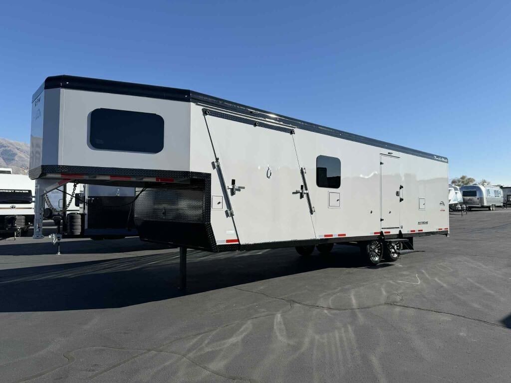 Gooseneck cargo trailer designed for OHVs such as snowmobiles and ATVs.