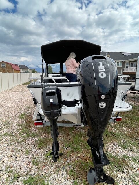 Mercury 150, and Mercury 8hp kicker. Brand new Helix 7 fish finder/GPS still in the box.