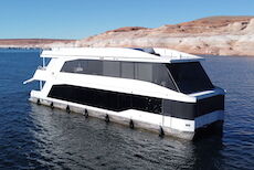 Luxurious 75 x 18 ft houseboat. 2 master suites with king beds, 4 additional bedrooms with queen beds, 2 kid cuddies with sunbrella pads and TV/DVD. 4 bathrooms. Two 16KW diesel generators. Twin diesel Mercruiser 150 HP engines. 2 PWC ramps. 700 gallon fuel capacity. 250 gallon toy tank. Back up cameras. Windlass anchoring. Central AC and heating. 780 gallon holding tank. UVB fresh water processing system - safe to drink water from tap. Custom granite countertops in galley and bathrooms. Extended swim deck. Entertainment system and surround sound on main deck and upper deck. 66" stainless steel fridge/freezer. Dishwasher, trash compactor, ice maker, microwave, stove, oven on both main deck and upper deck. Starlink. Slide with water pump. Maintenance fee $4500. Perfect time to be on the lake! Enjoy the best Powell has to offer as this week is often when water level is at its peak! https://my.matterport.com/show/?m=CBVPfeFtyGn