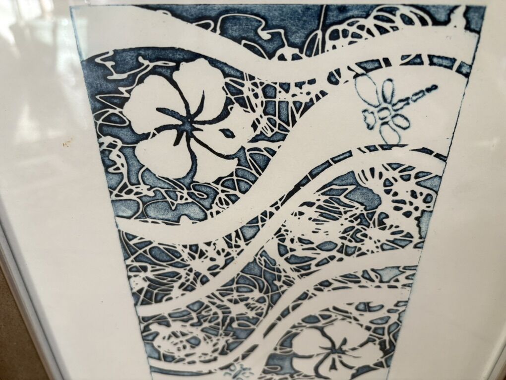 I have a beautiful piece of art called Tropical Noel. It has hibiscus, a dragonfly and butterfly. It is numbered III/V and signed by the artist but I can’t read the signature. I believe it is block printed but could be wrong in the technique. It is in a pretty silver frame that is 17 1/4 inches tall and 14 1/4 inches wide. The last 5 pictures are other artwork that I have listed on KSL. See my other ads for jewelry, artwork, home decor and more.