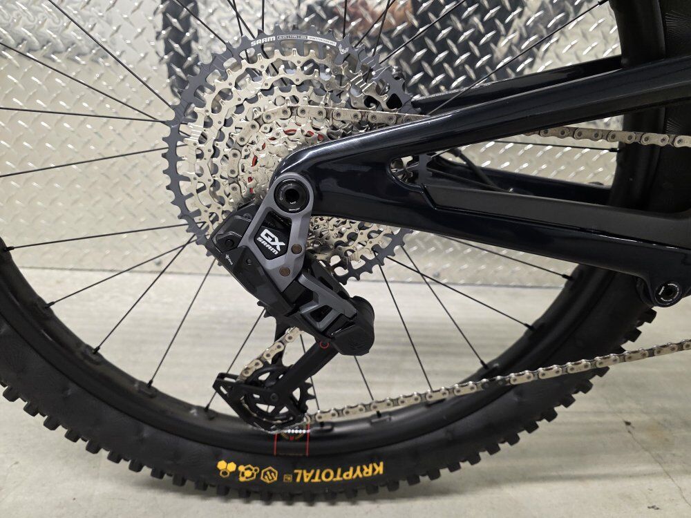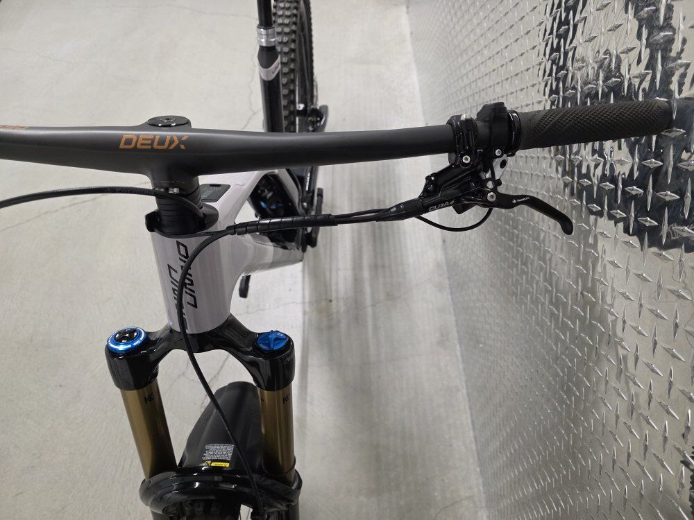 Fox Factory 38 170mm fork Fox Factory X2 160mm shock Sram GX Transmission drivetrain Deux carbon cockpit Formula Cura 4 brakes 220/203 rotors Rockshox Reverb axs dropper post Reserve 30 HD 29/27.5 carbon wheelset Industry Nine Hydra hubs Fillmore valves Continental Argotal /Kryptotal FR tires