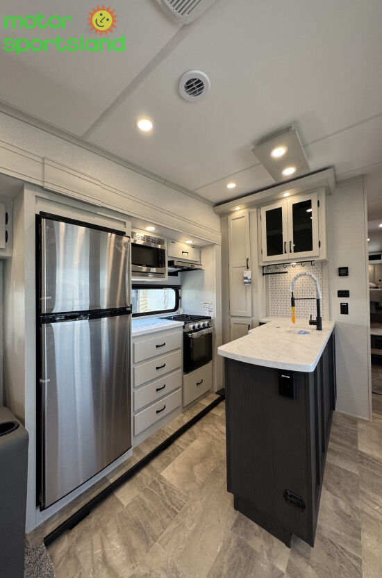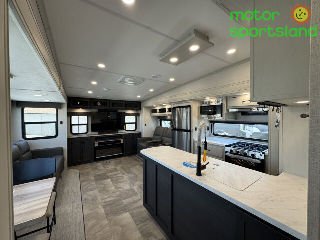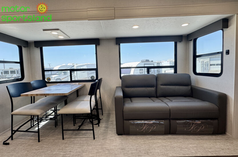 Spacious Family Layout: Perfect for large families, this model offers a bunkhouse design with ample sleeping space, ensuring everyone has their own cozy spot. Luxury Interiors: Enjoy premium finishes, modern appliances, and plush furnishings that scream sophistication and comfort. Outdoor Entertainment: An exterior kitchen and entertainment setup make tailgating or camping under the stars an absolute blast. Advanced Technology: Stay connected with smart RV features and energy-efficient systems built for the modern traveler. Unmatched Storage: Pack everything you need with generous storage solutions for gear, toys, and essentials.