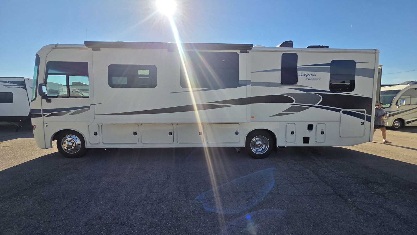 This 2016 Jayco Precept 35UN delivers premium comfort, smart design, and Jayco’s quality engineering in a gas-powered Class A motorhome. Built on the Ford F53 chassis and powered by the 6.8L Triton V10 (320 HP / 460 lb-ft torque), it provides confident performance and easy drivability. We drove it in from Las Vegas, Nevada, and it performed flawlessly. With only 10,978 miles and 32 hours on the Onan 5.5 kW generator, this Precept has been fully inspected and road-tested by Right Side Up RV.