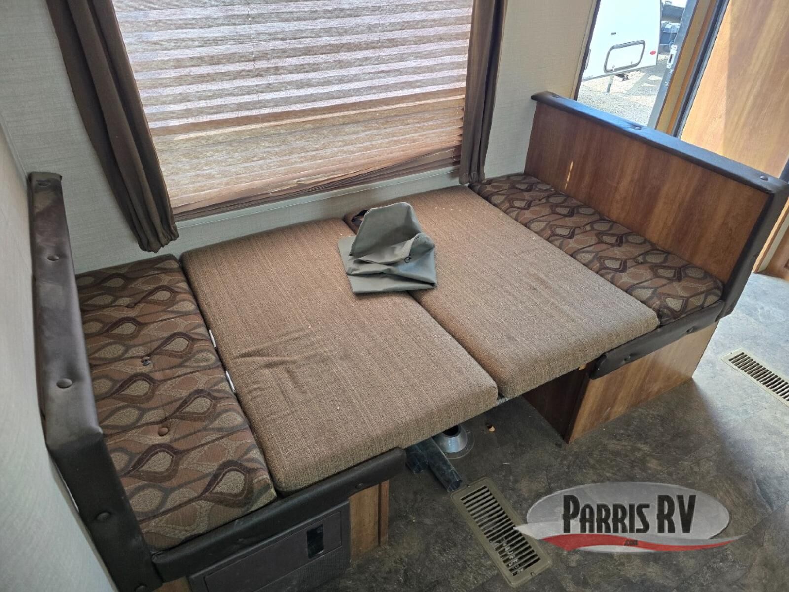 Step inside the rear most side entry door and find you are in this Springdale kitchen which features a refrigerator, three burner range with overhead microwave oven, and large kitchen sink. There are plenty of overhead cabinets, plus additional storage below the counter-tops too. A booth dinette is nearby to the right of that same entry door providing ample seating for meals.