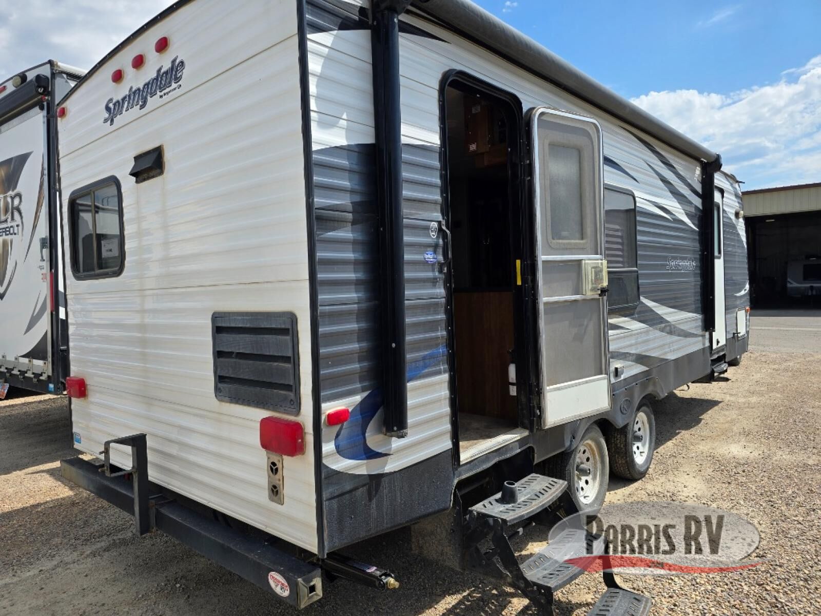The rear kitchen is what makes this Springdale travel trailer unique. Model 241RKWE also features a single slide for added interior space, plus dual entry doors.