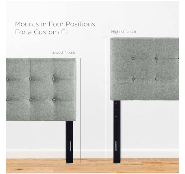 MODWAY, Emily Gray Full Upholstered Fabric Headboard