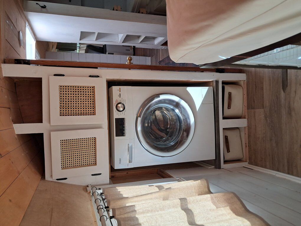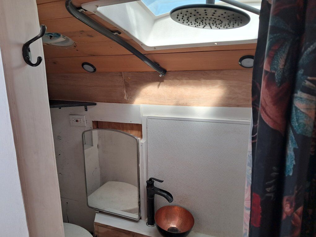 Bathroom with Nature’s Head composting toilet (urine diverts to grey tank)