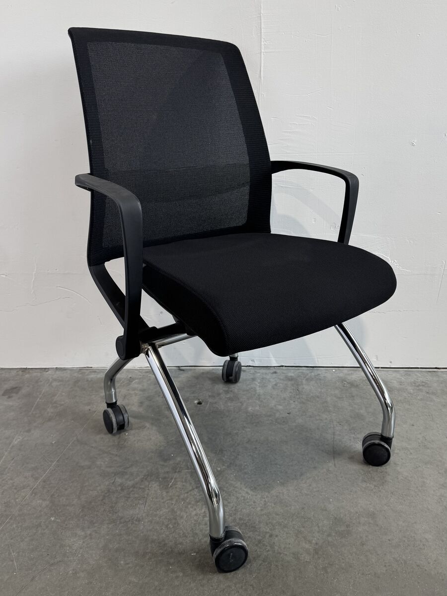 Flip training nesting office chair by AMQ. Mesh back with chrome legs. 2 chairs available.