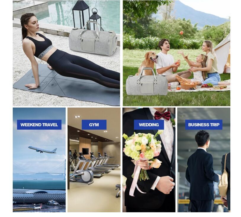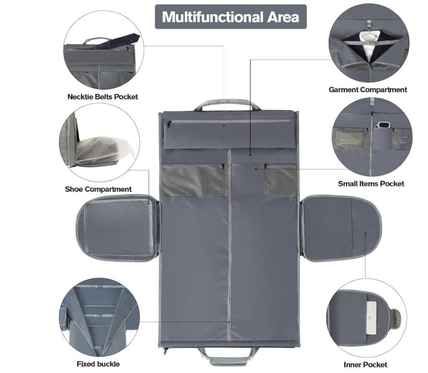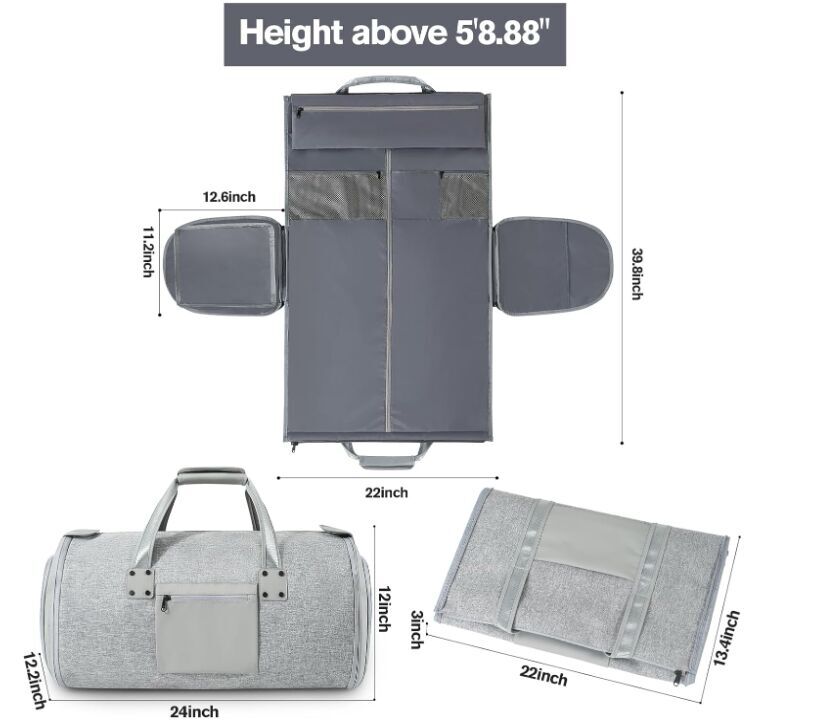 ZelleLarge: 24.1”L x 12.2”W x 12.1”H, 2 in 1 Convertible Suit Bag Travel with Shoe Bags - Large Light Gray