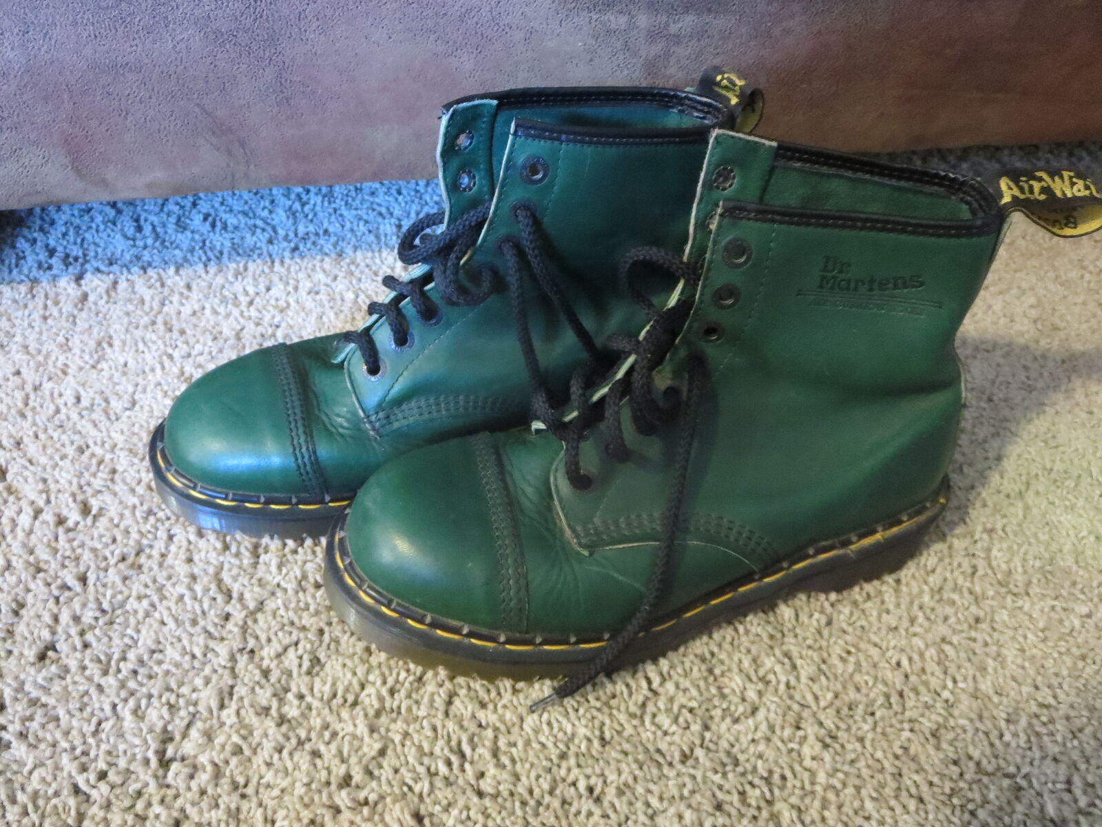 I have a pair of. Vintage mEN'S Dr. Martens 1460 Smooth Leather Green size 9. I am A male they are to big for me I wear size 9 so 10 for sure for sale call or text only thanks for looking D.