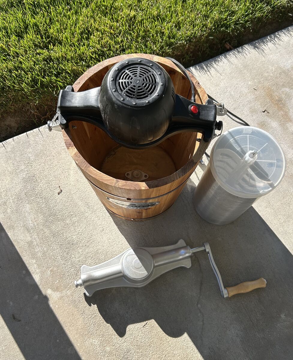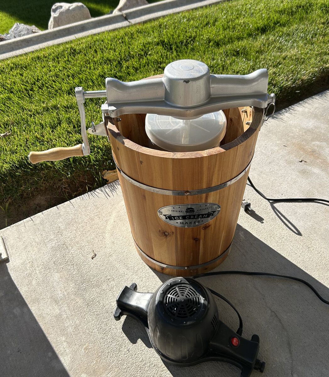 I have an Original Vintage 6 Quart Ice Cream Automatic Maker with Hand Crank Attachment for $80 cash. This was used once and is still like brand new. It has an automatic motor as well as a hand crank attachment. Has an easy on/off switch and an easy removable aluminum 6 quart canister with a six-fin paddle. This has been stored in a garage and is like new. Contact me to see.