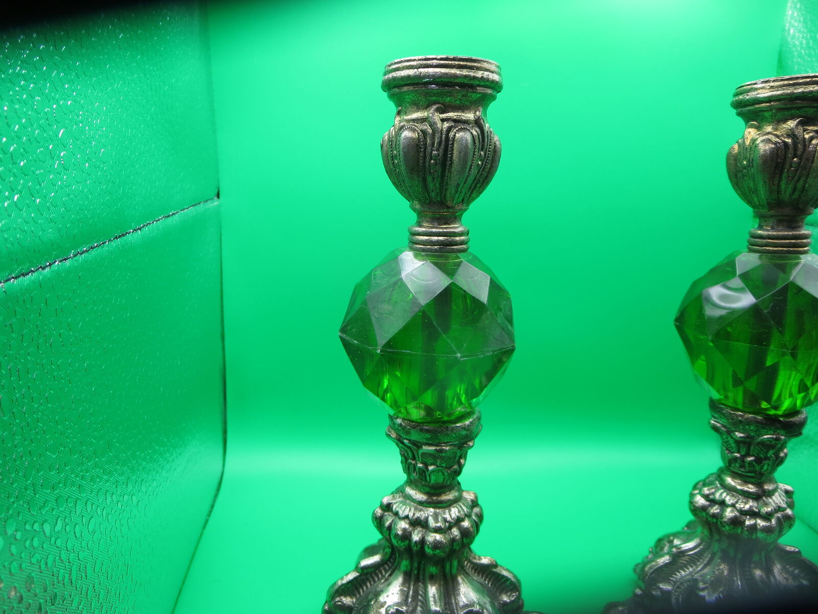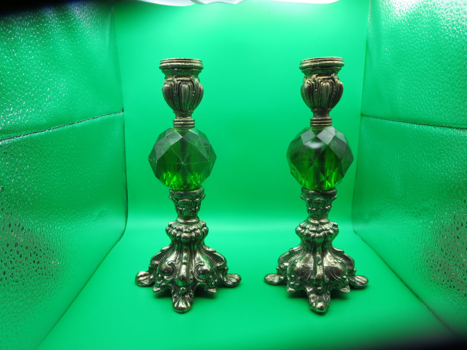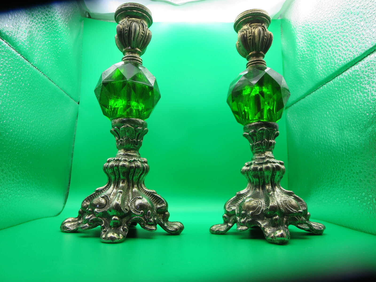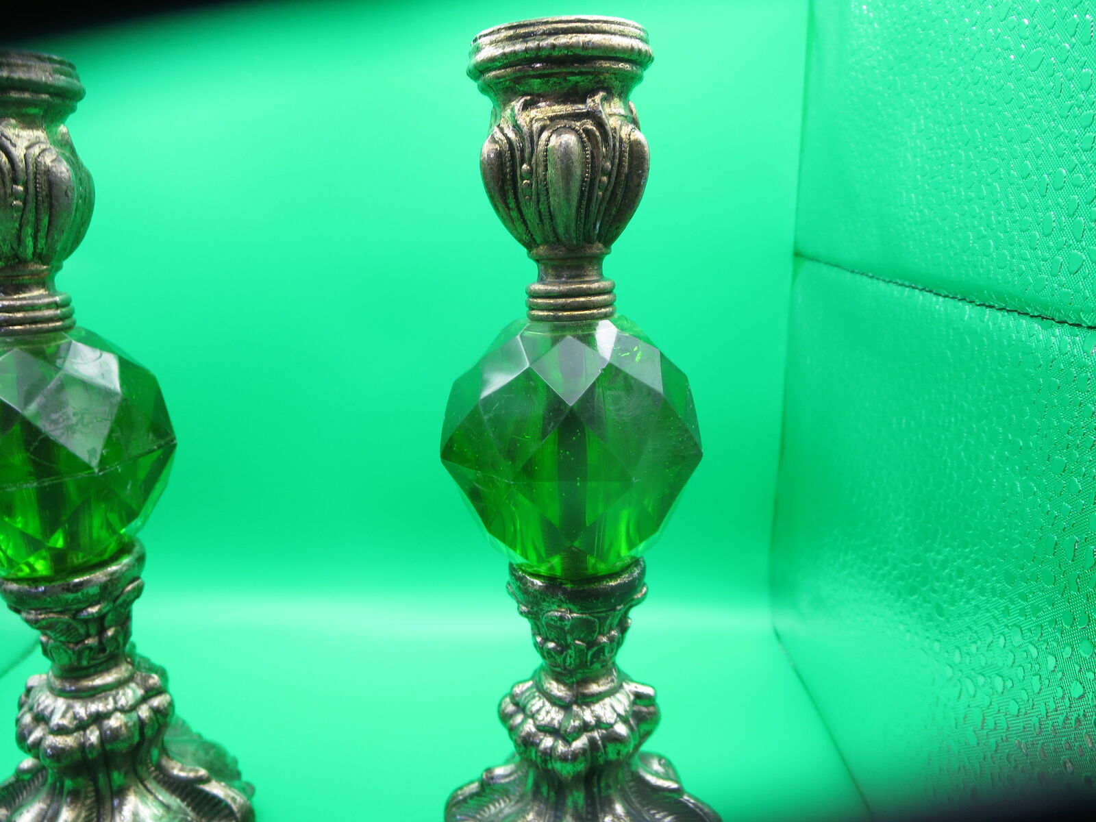 I have a. Vintage set of 2 Regency hollywood candlesticks green Lucite. for sale call or text only thanks for looking D.