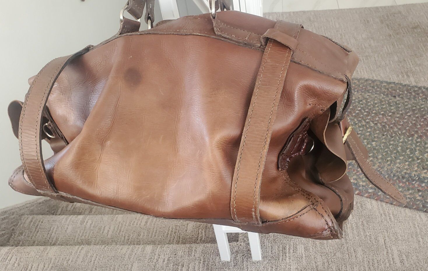 VenmoHeavy duty leather satchel that would be great for horseback or motorcycle riding storage. Custom hand made. Approximately 22" x 12" x 11". Excellent condition