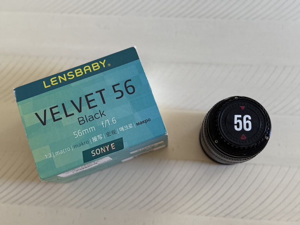 Comes with the original box and lens caps. Back lens cap has a 56 sticker on it so you can easily find it.