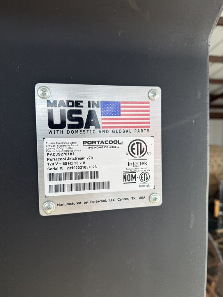Brand Portacool Material Plastic Mounting Type Freestanding Special Feature Portable Color Black Air Flow Capacity 22500 Cubic Feet Per Minute Air delivery - 22, 500 CFM / 38, 228 m3/hr. Cooling Capacity: 5, 625 s. f. / 523 m2 Velocity: 26 mph / 42 kph Speeds: Variable Electrical requirements: Standard 115v - 20 amp plug